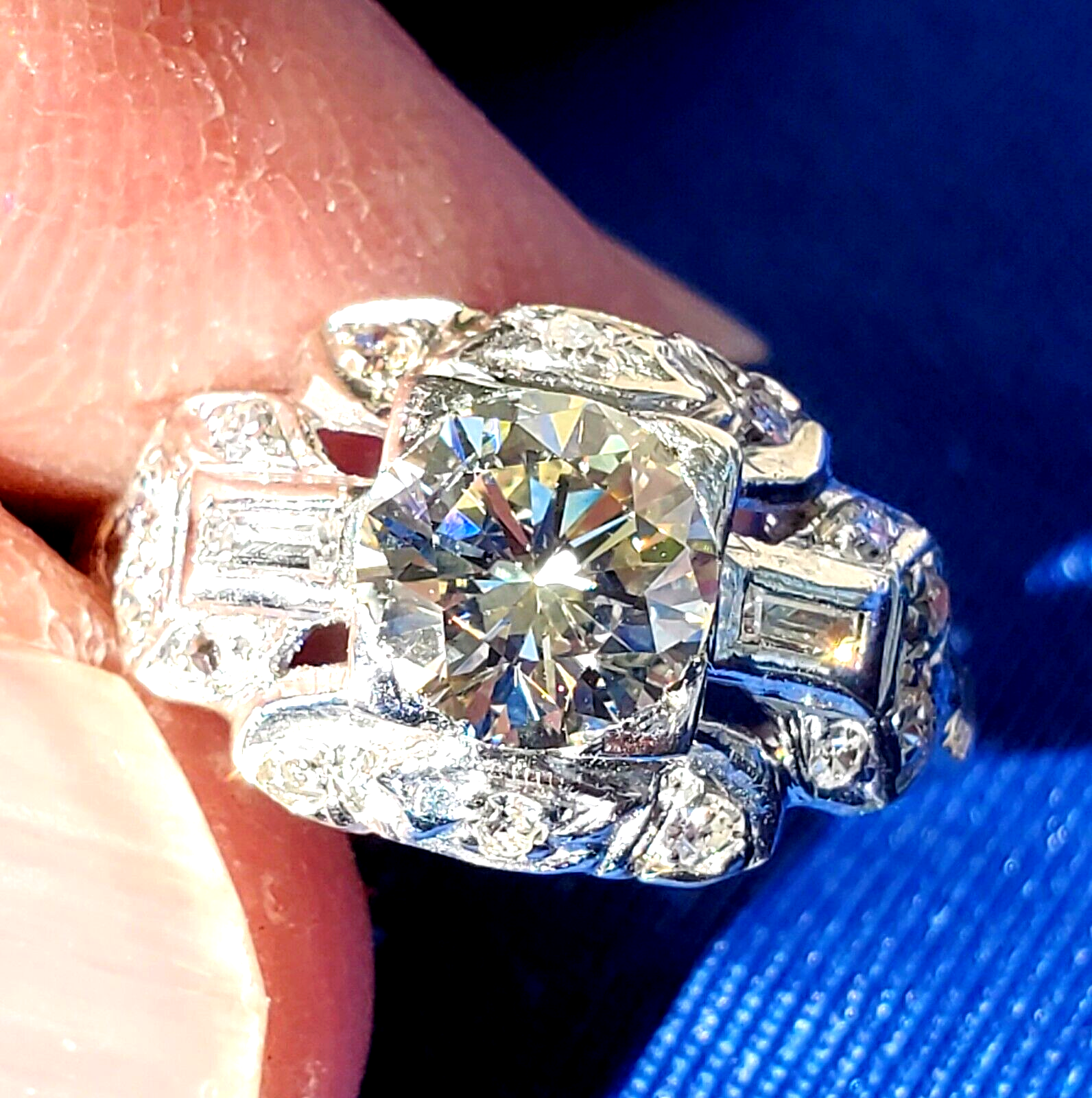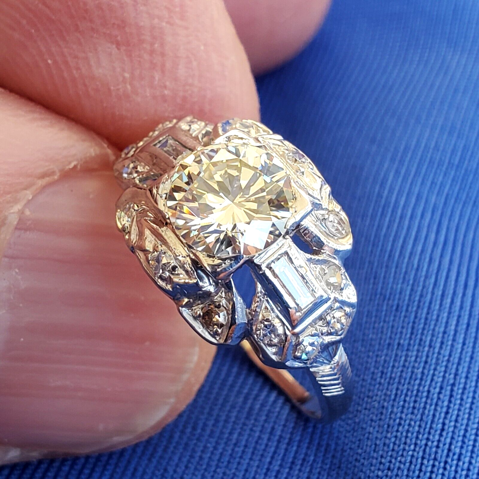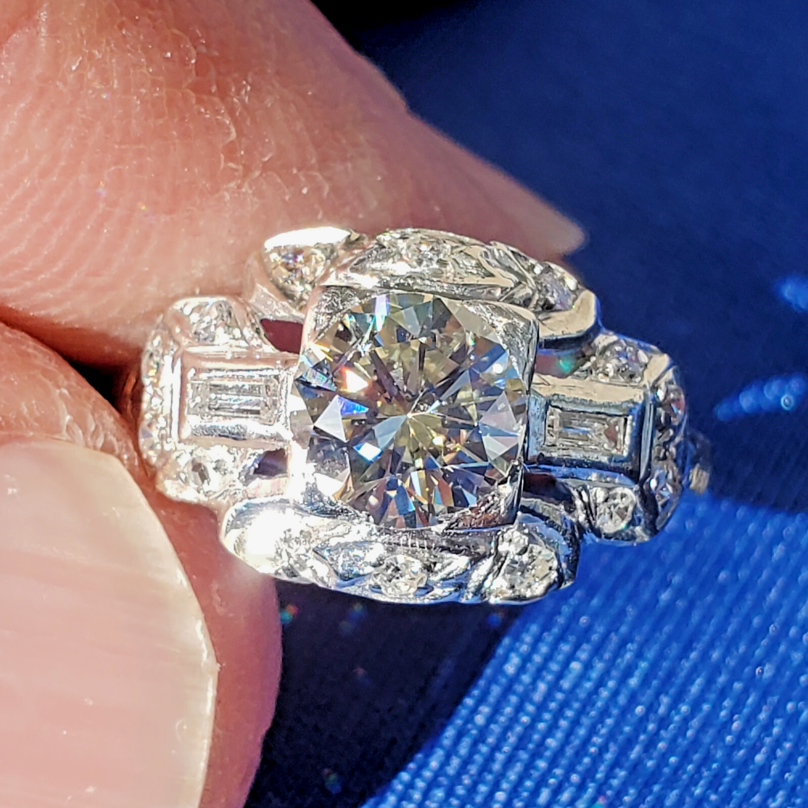 Earth mined Diamond Deco Engagement Ring 1.26 carat Vintage Platinum Solitaire 6