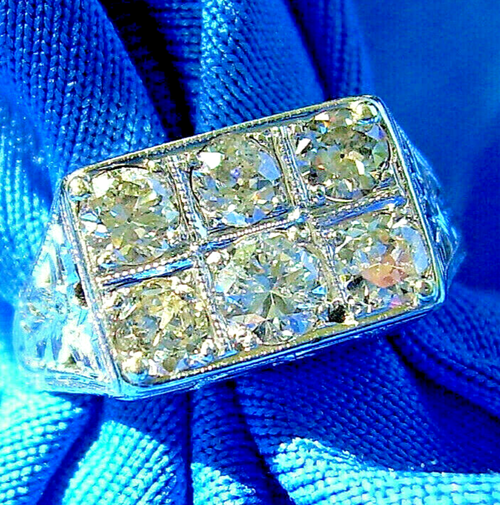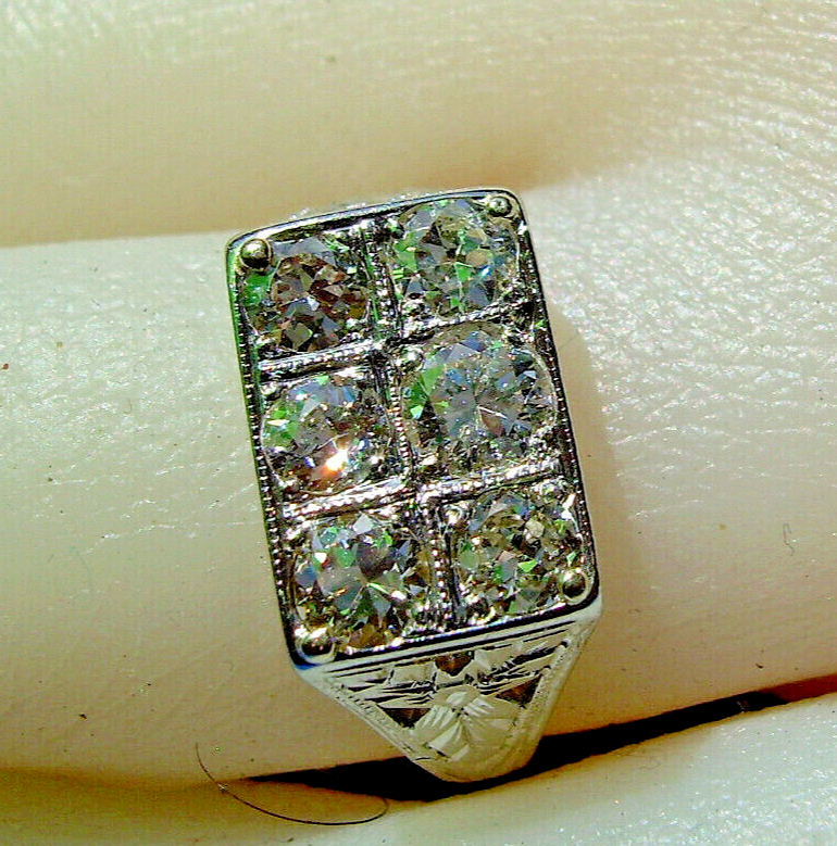 Earth mined Diamond Deco Engagement Ring Antique 18k White Gold Statement Band