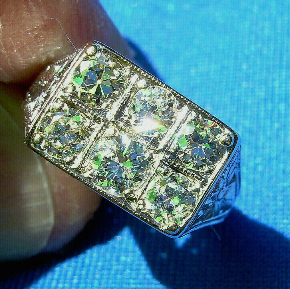 - Earth mined Diamond Deco Engagement Ring Antique 18k White Gold Statement Band