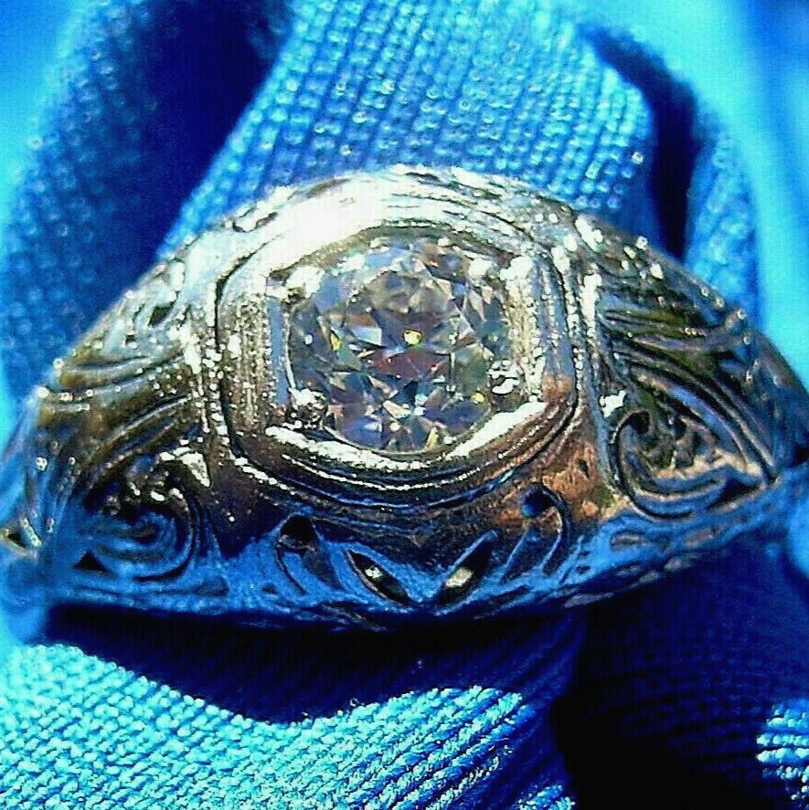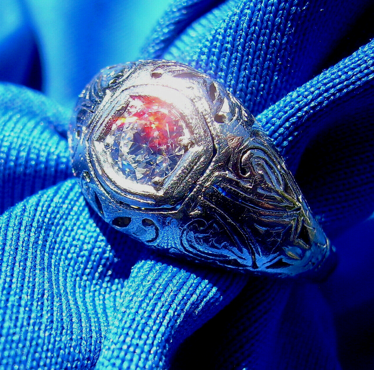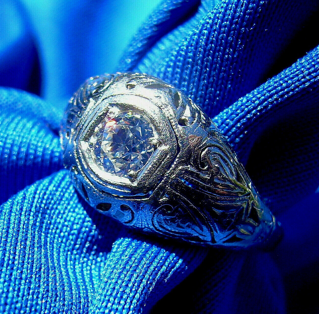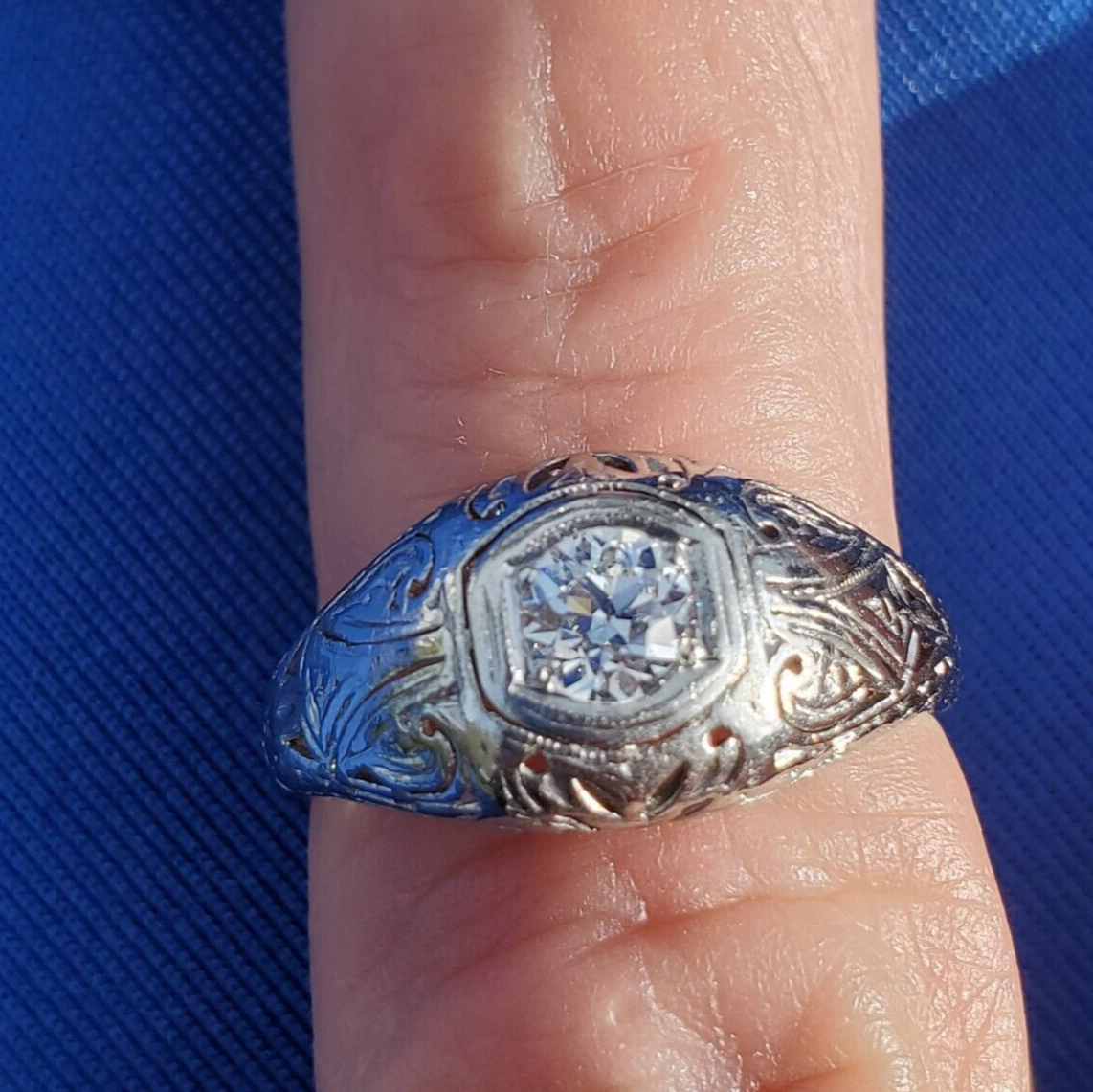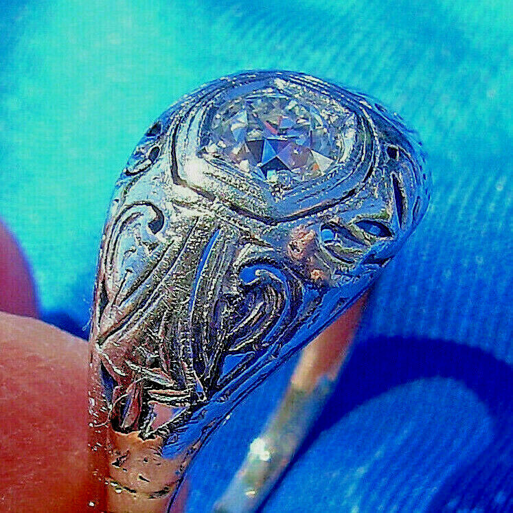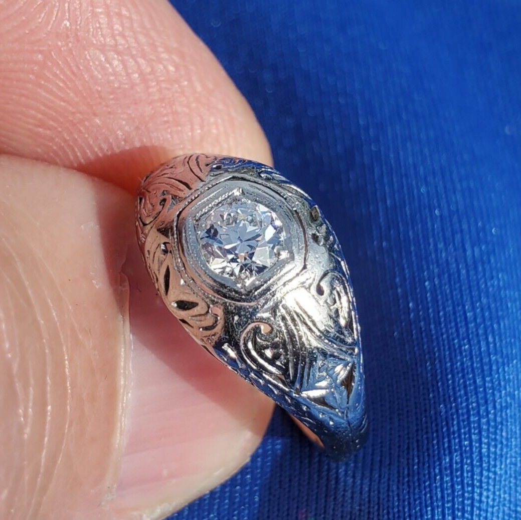 Earth mined Diamond Deco Engagement Ring Antique Filigree Solitaire 14k Gold