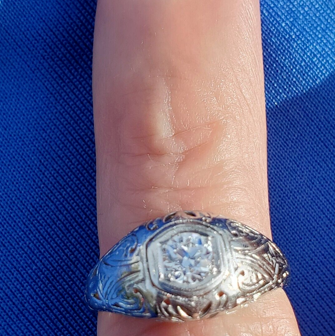 ANTIQUE DIAMOND WHITE GOLD GATSBY ERA SOLITAIRE.