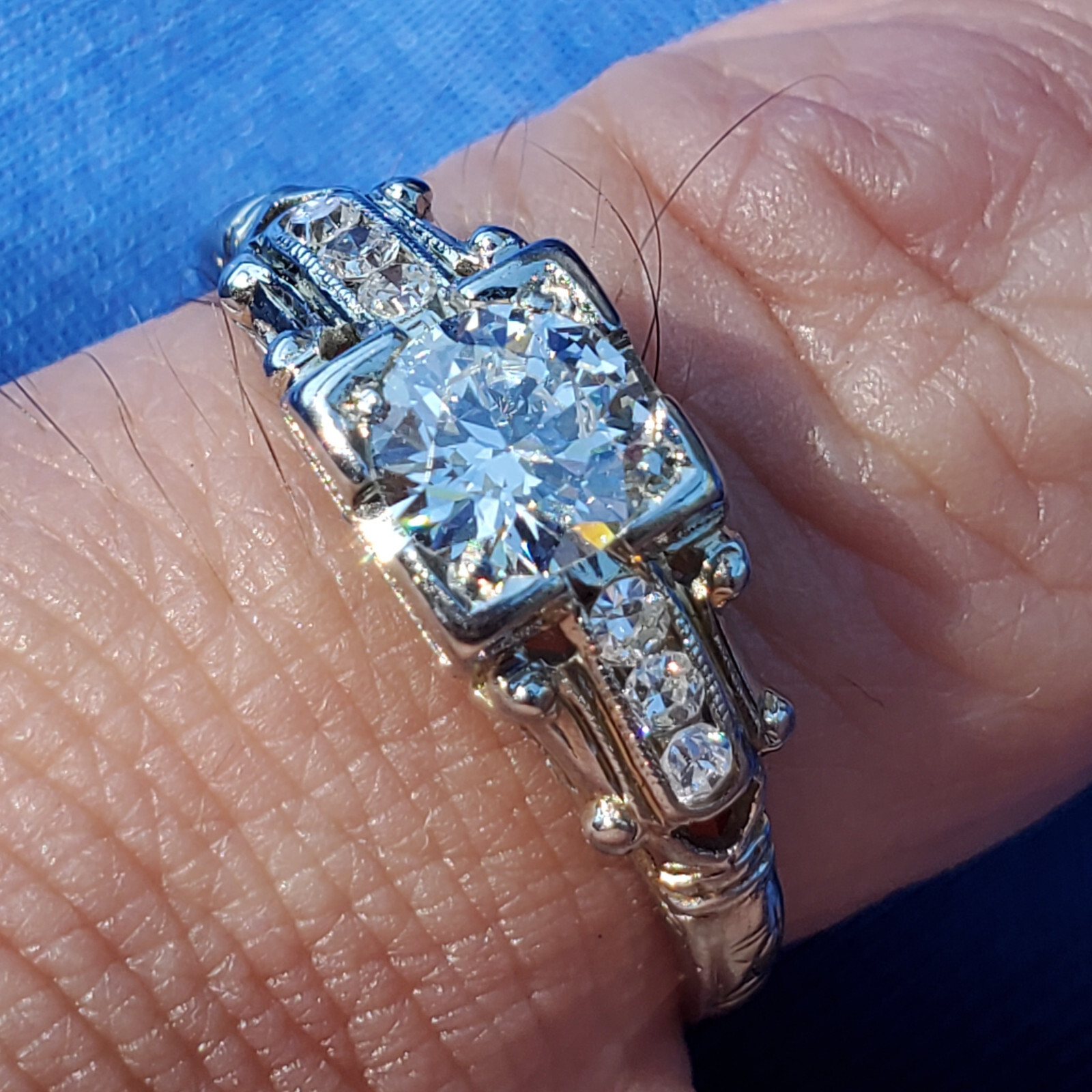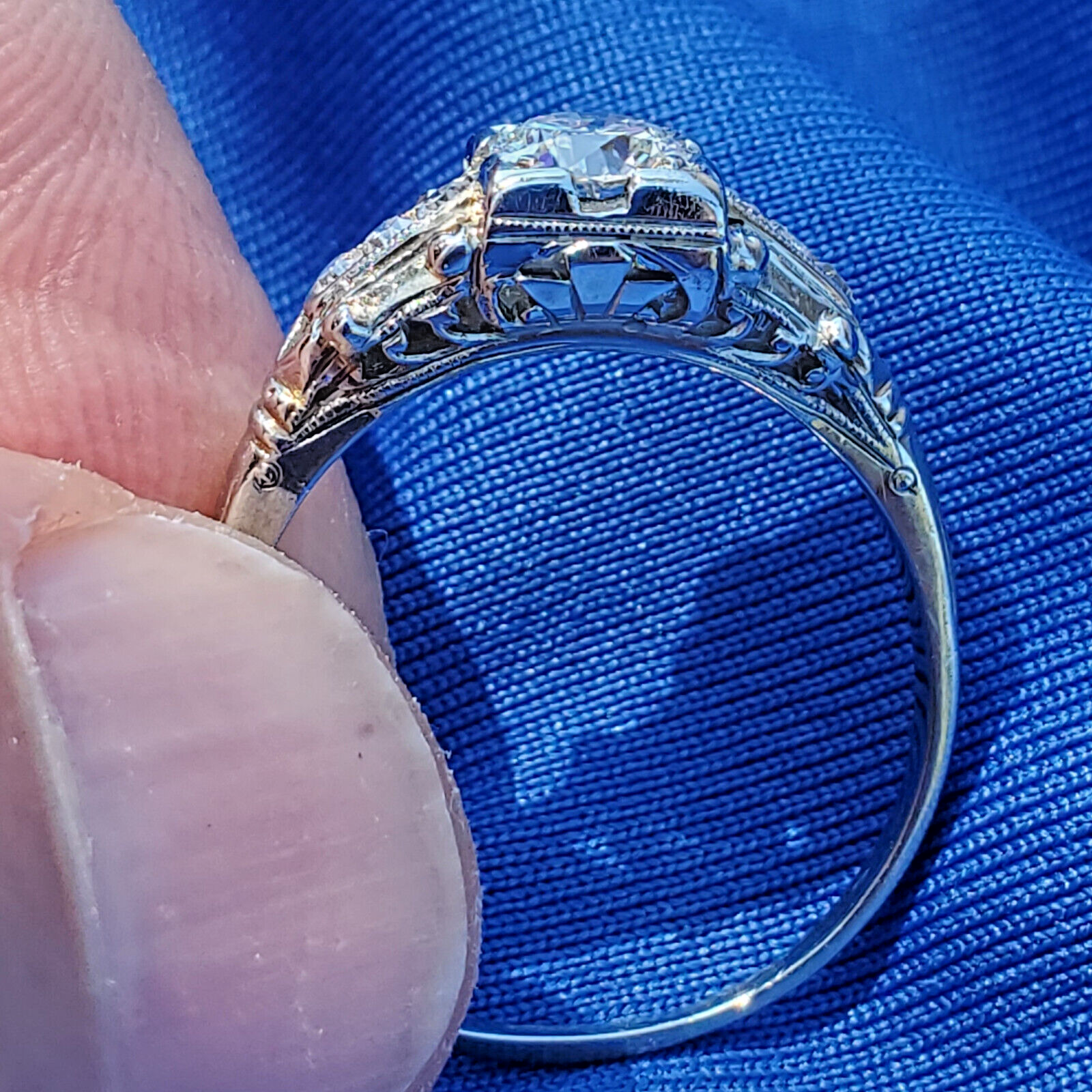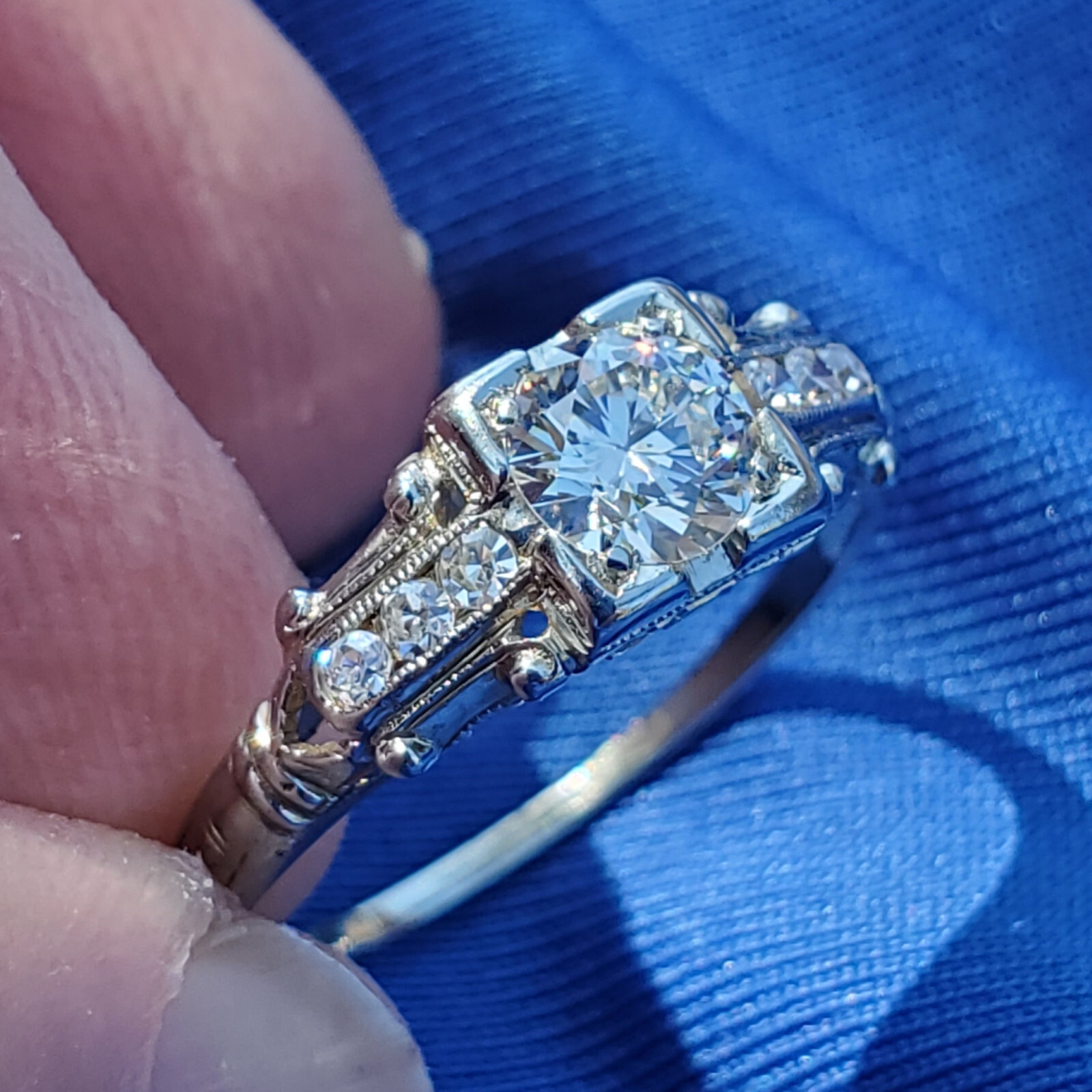 Earth mined Diamond Deco Engagement Ring Vintage 0.75 carat Statement Solitaire