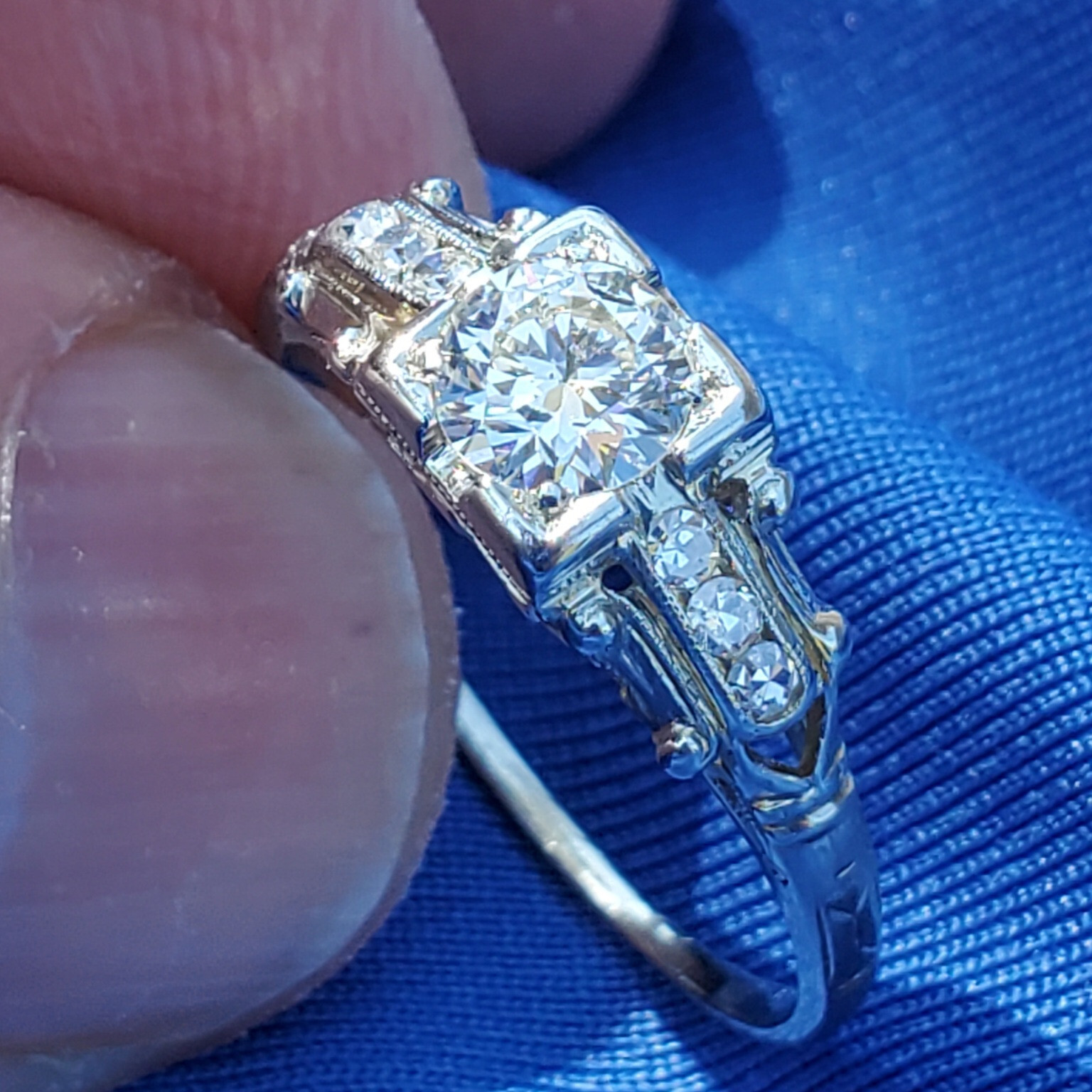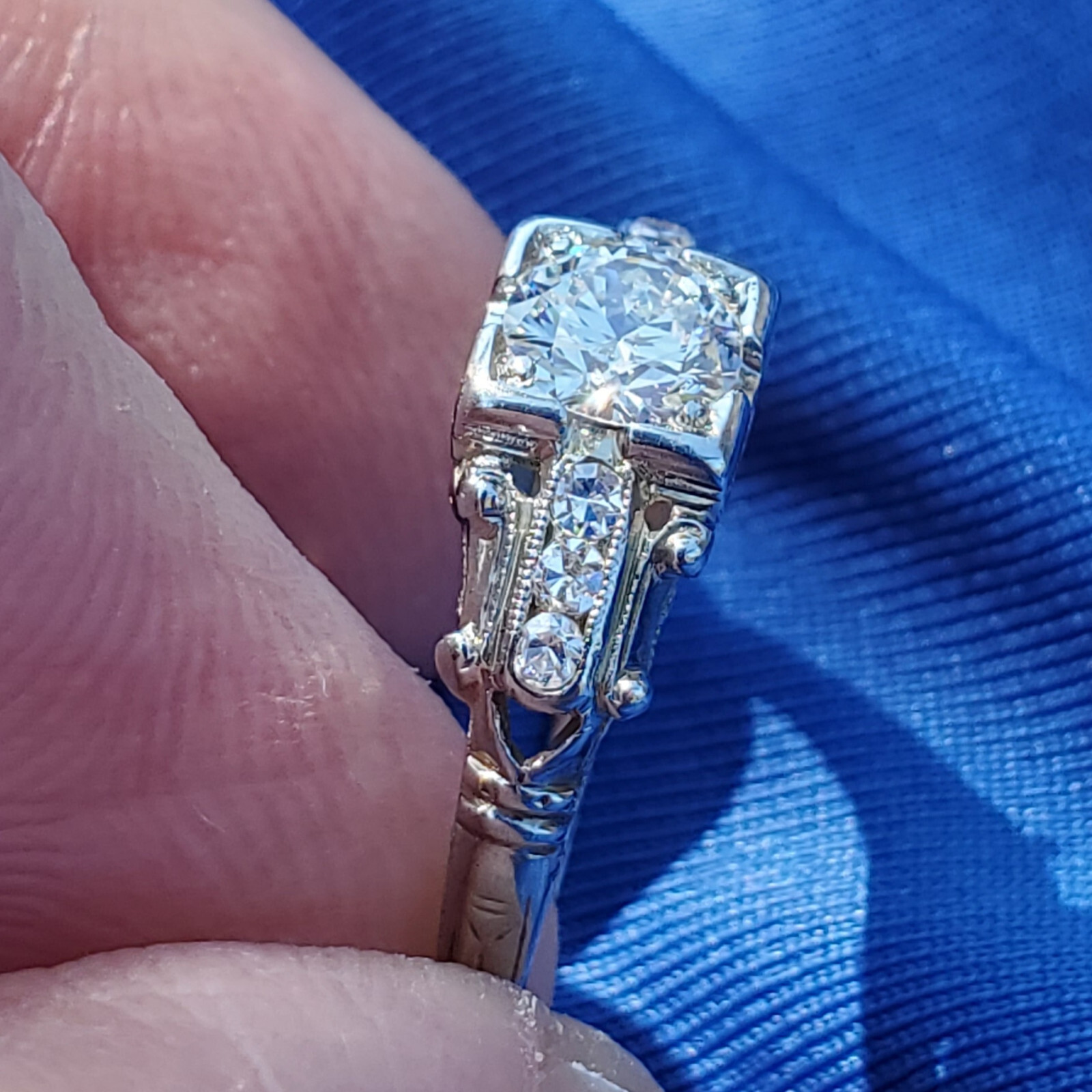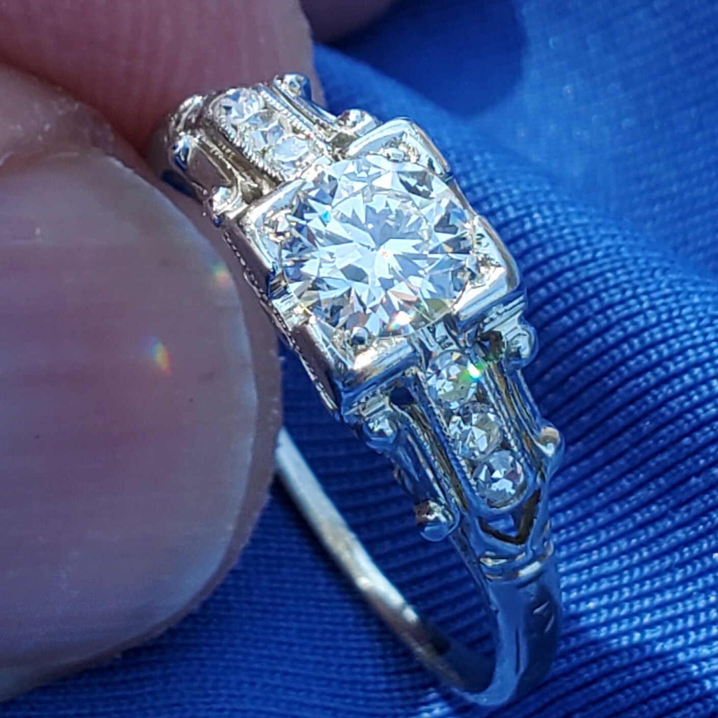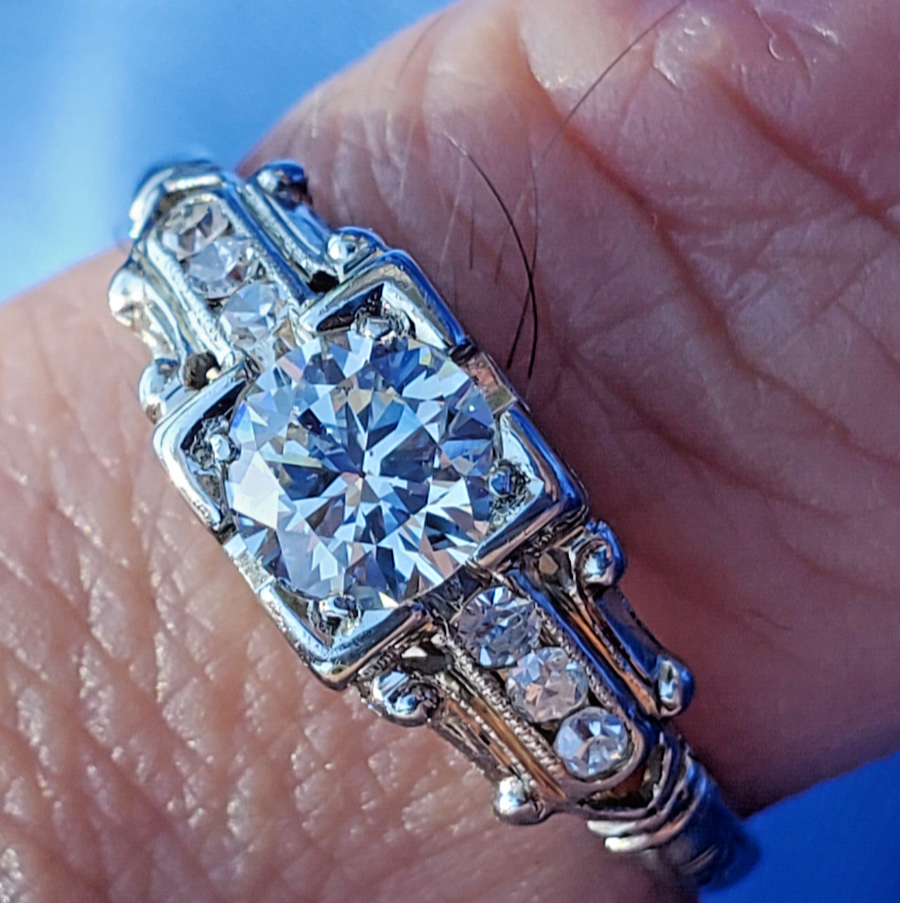 Earth mined Diamond Deco Engagement Ring Vintage 0.75 carat Statement Solitaire