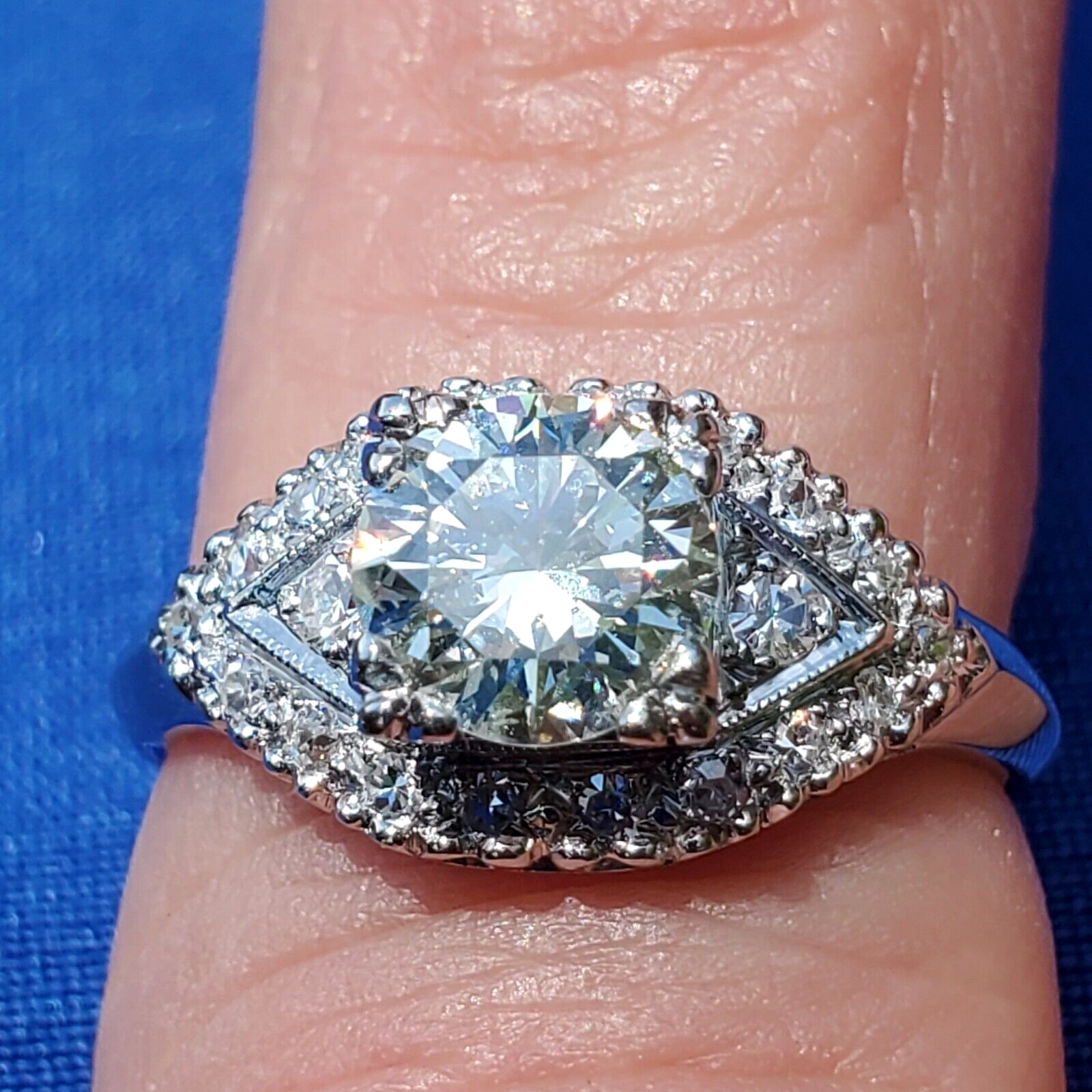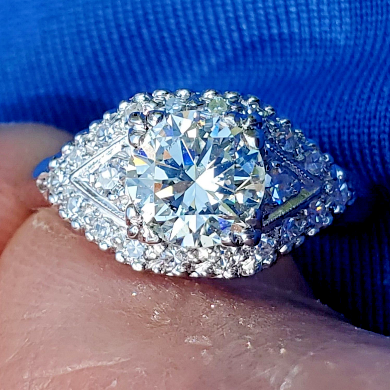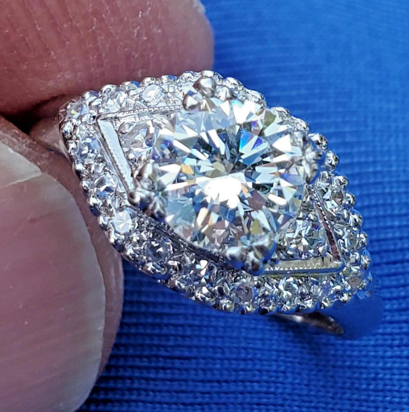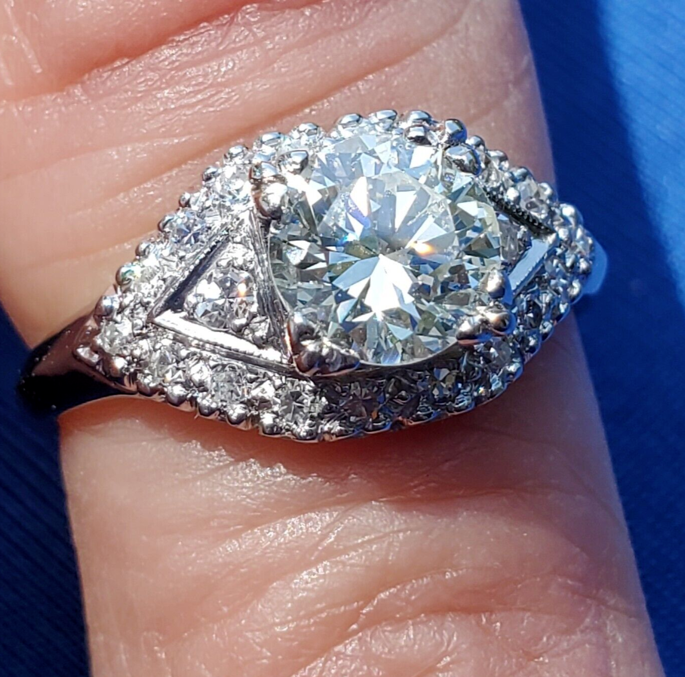 - Earth mined Diamond Deco Platinum 1.38 ct Engagement Ring Matching Wedding Band