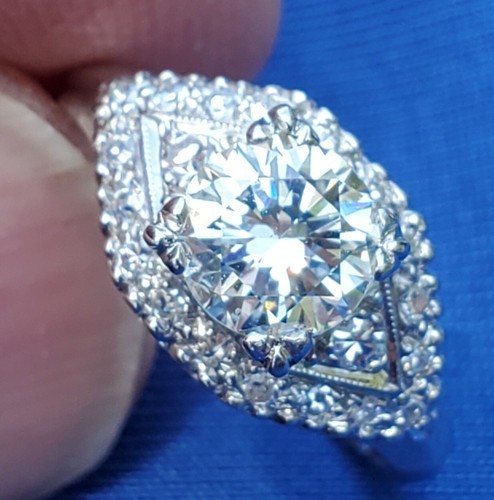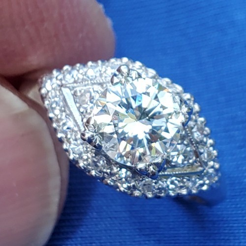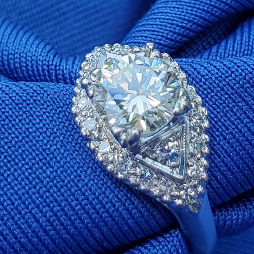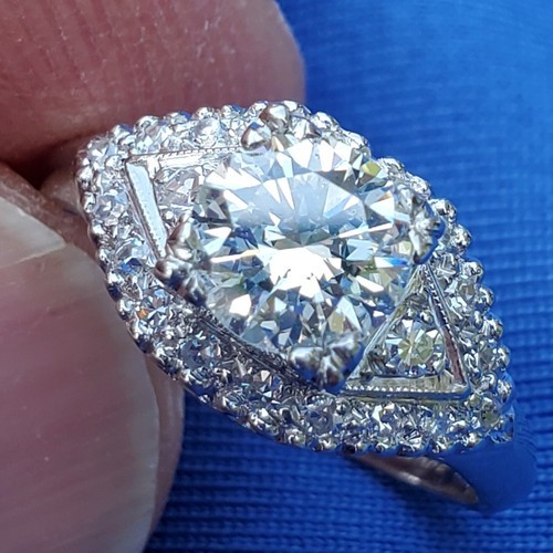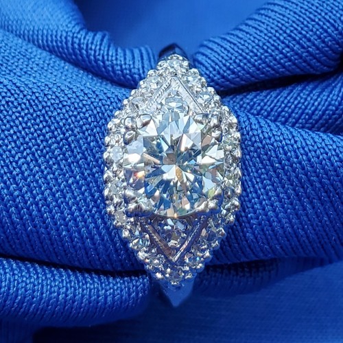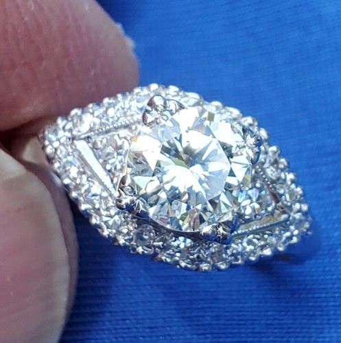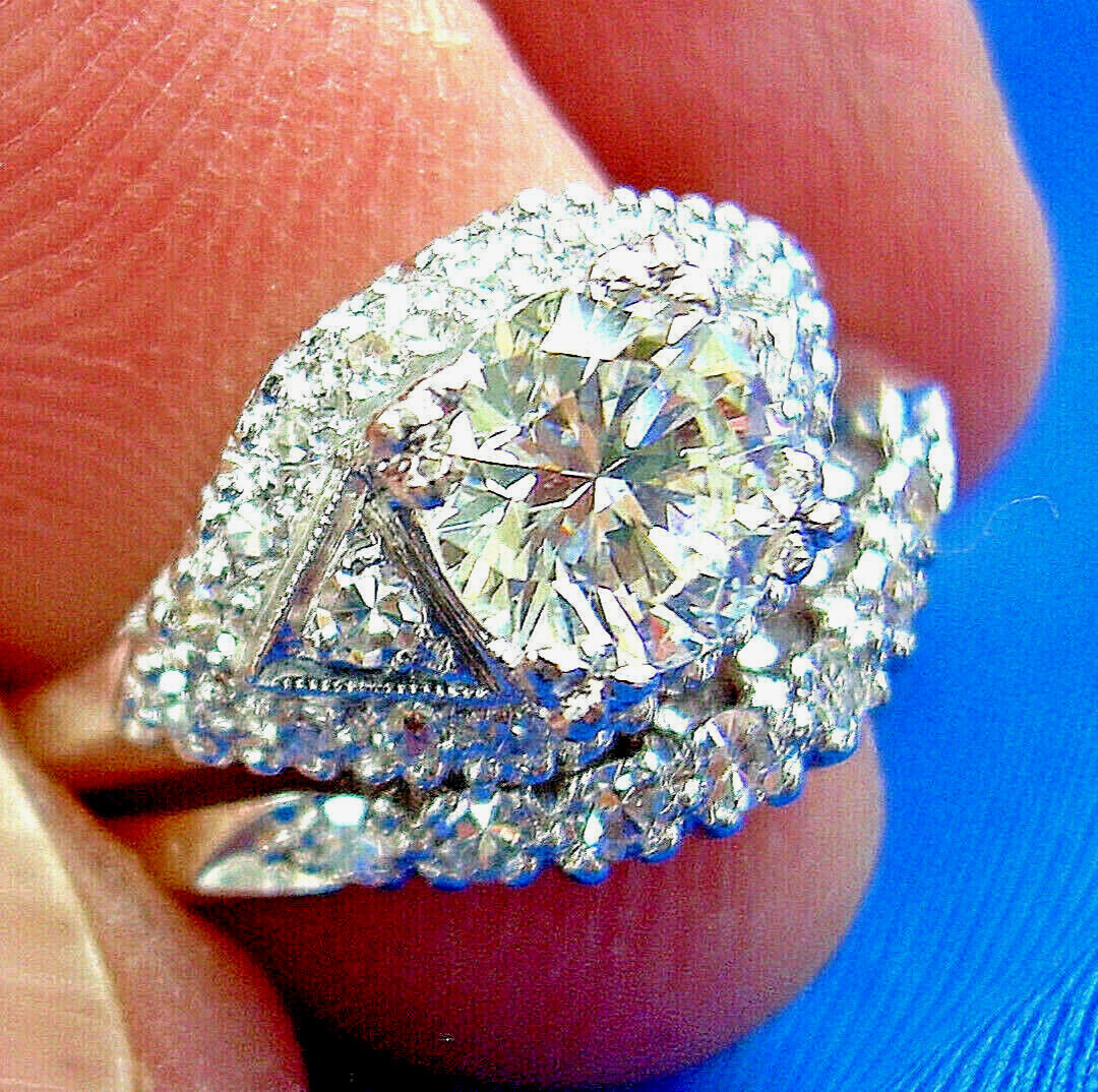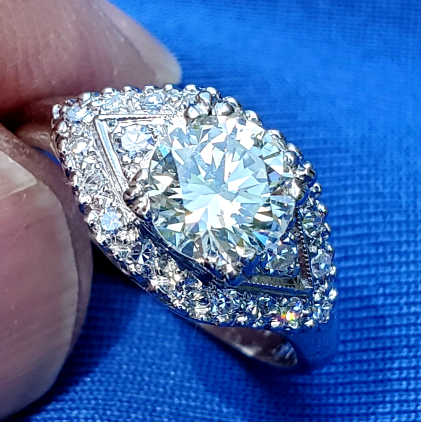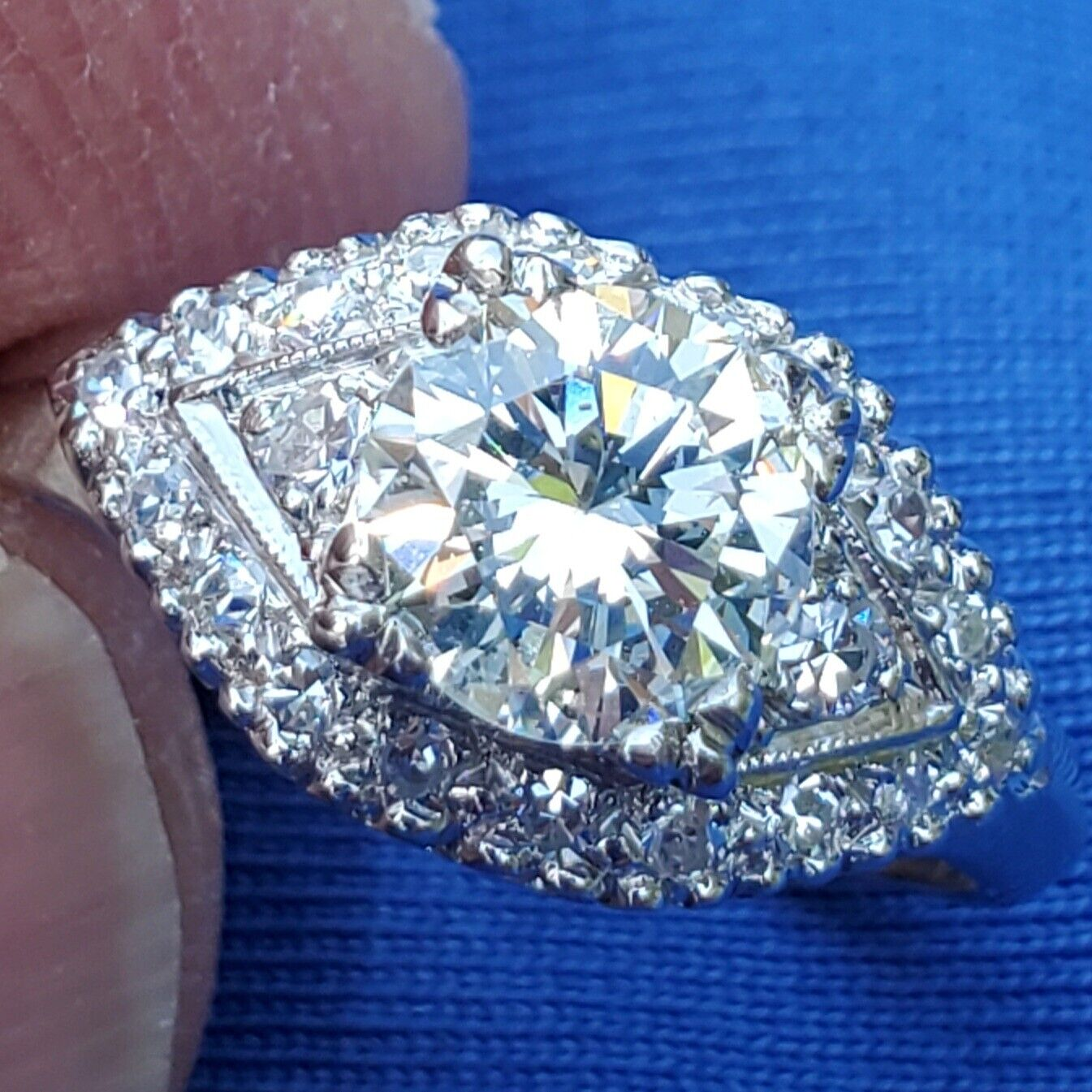 - Earth mined Diamond Deco Platinum 1.38 ct Engagement Ring Matching Wedding Band