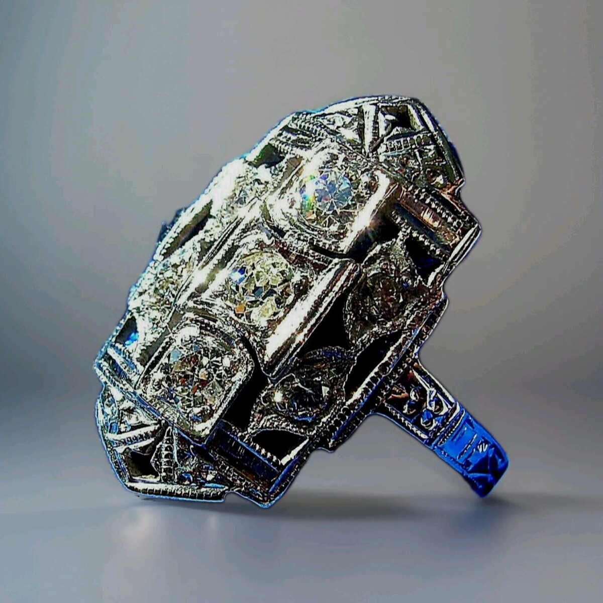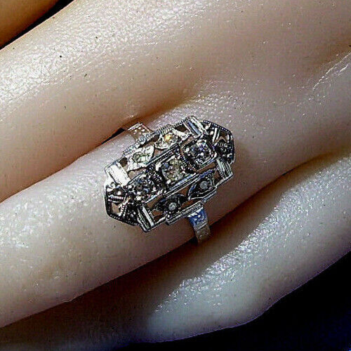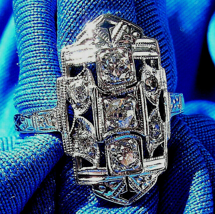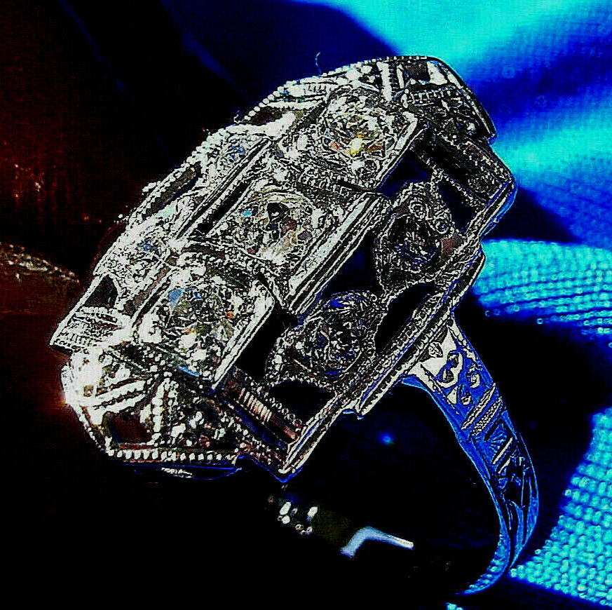 - Earth mined Diamond Deco Statement Engagement Ring Vintage Style 14k White Gold