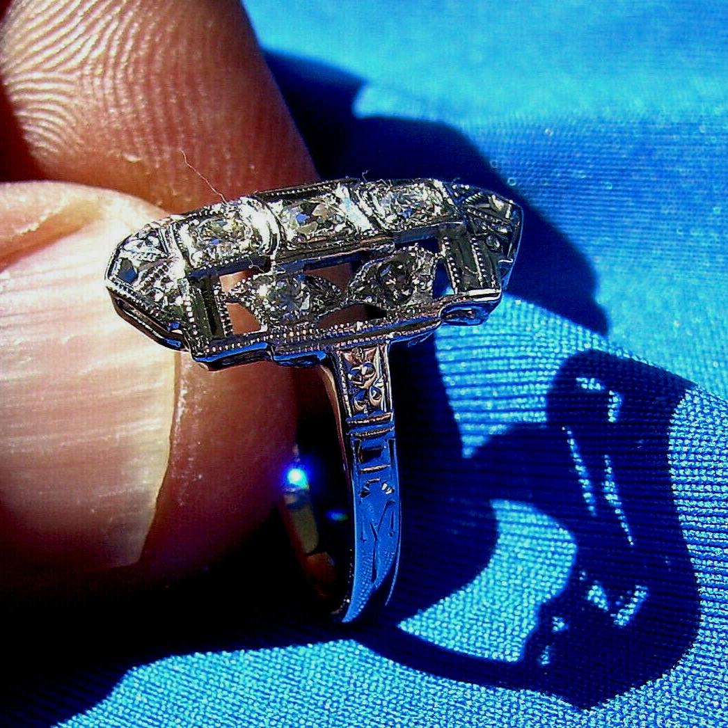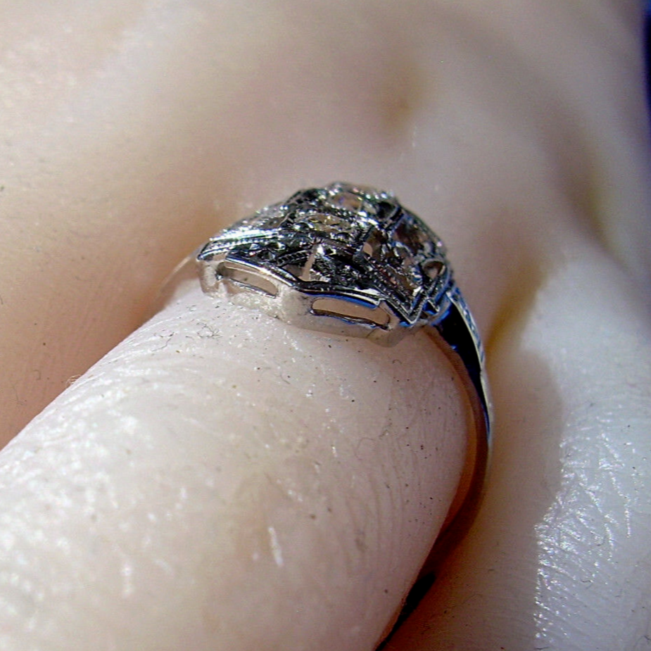NATURAL EARTH-MINED DIAMOND DECO GATSBY STYLE ENGAGEMENT RING.