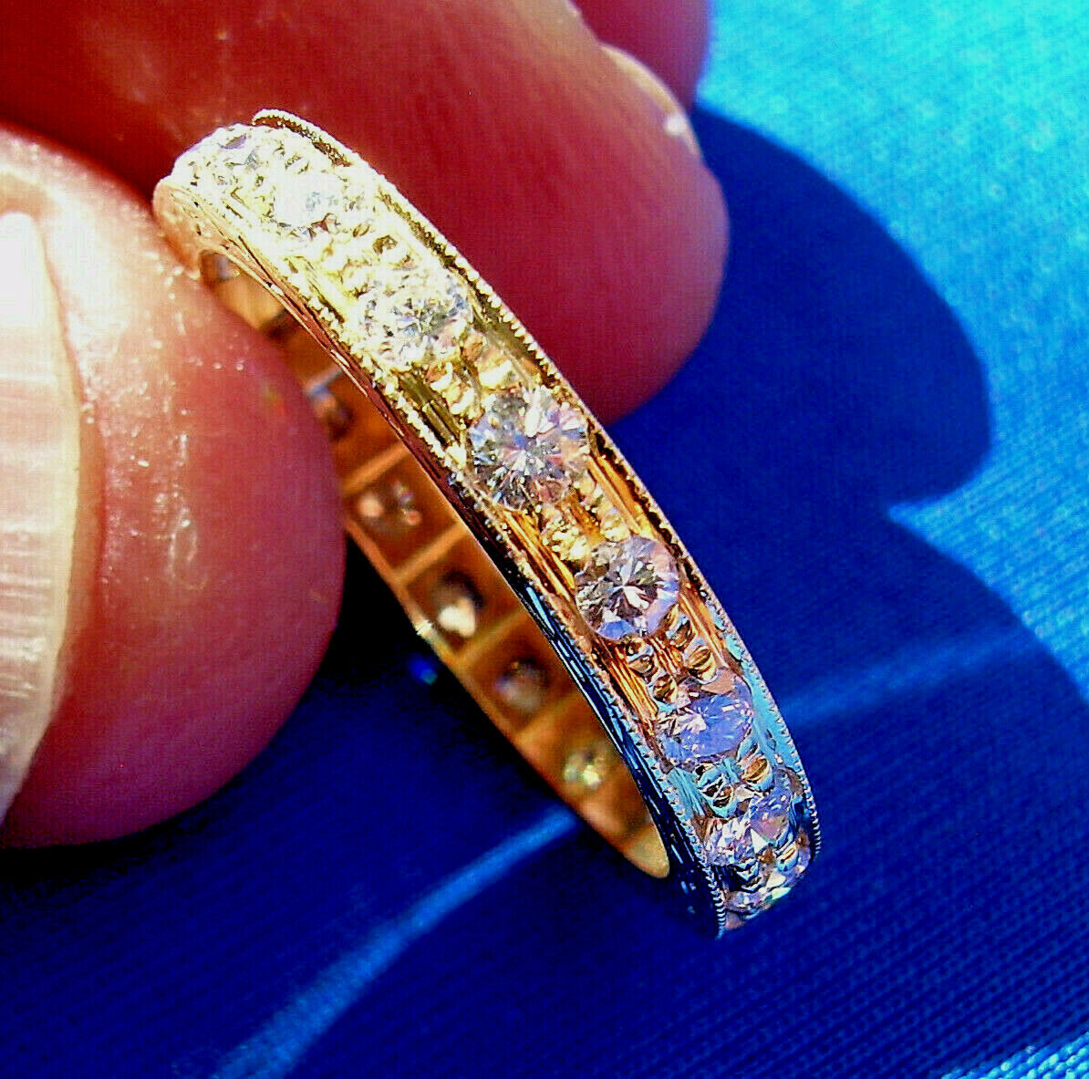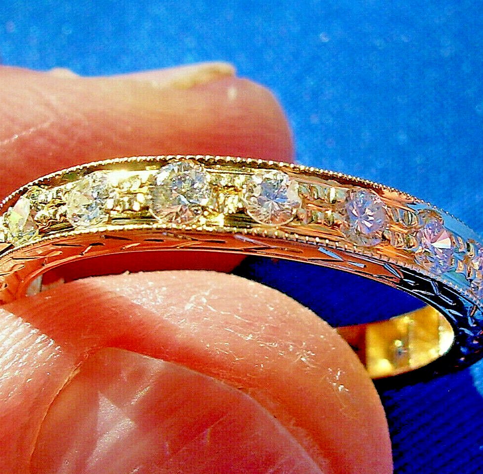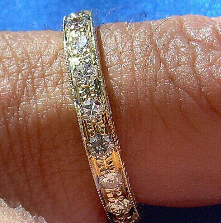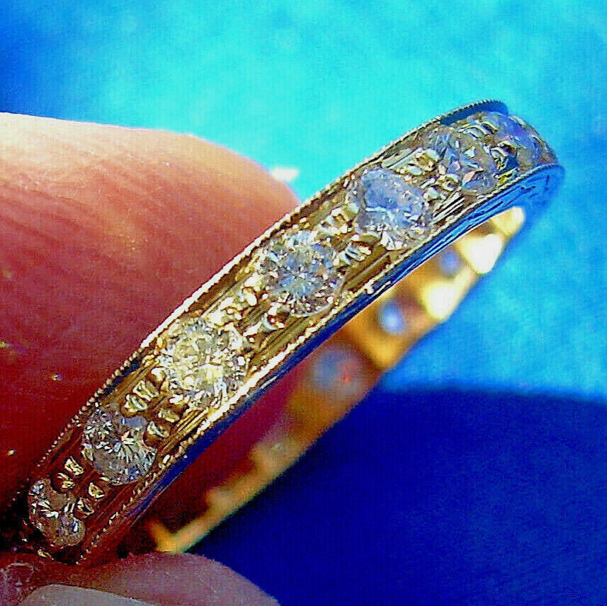 Earth mined Diamond Deco Wedding Band 14k Eternity Anniversary Ring Size 9.5