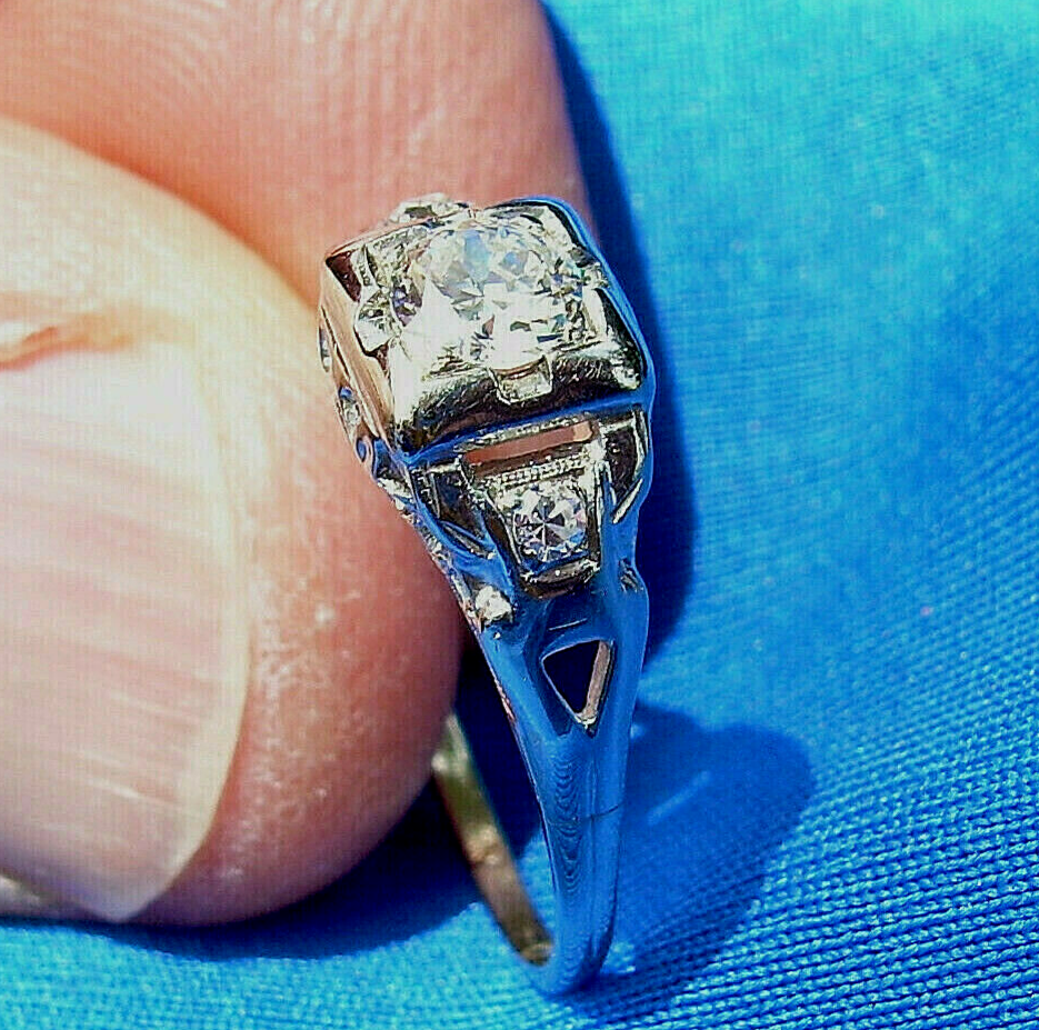 - Earth mined Diamond European Cut Deco Engagement Ring Vintage 14k Gold Solitaire