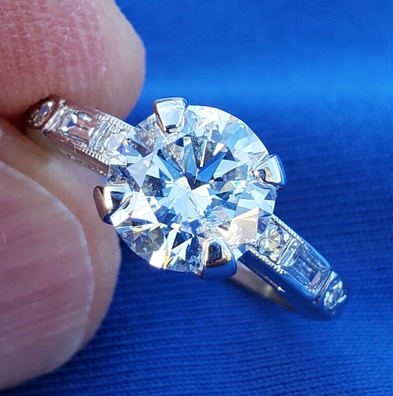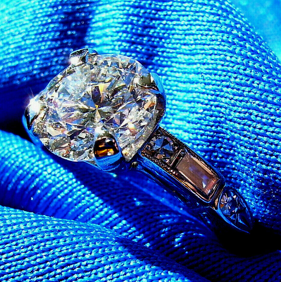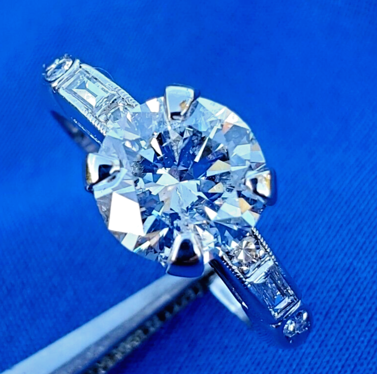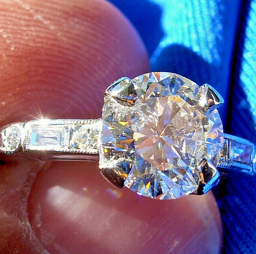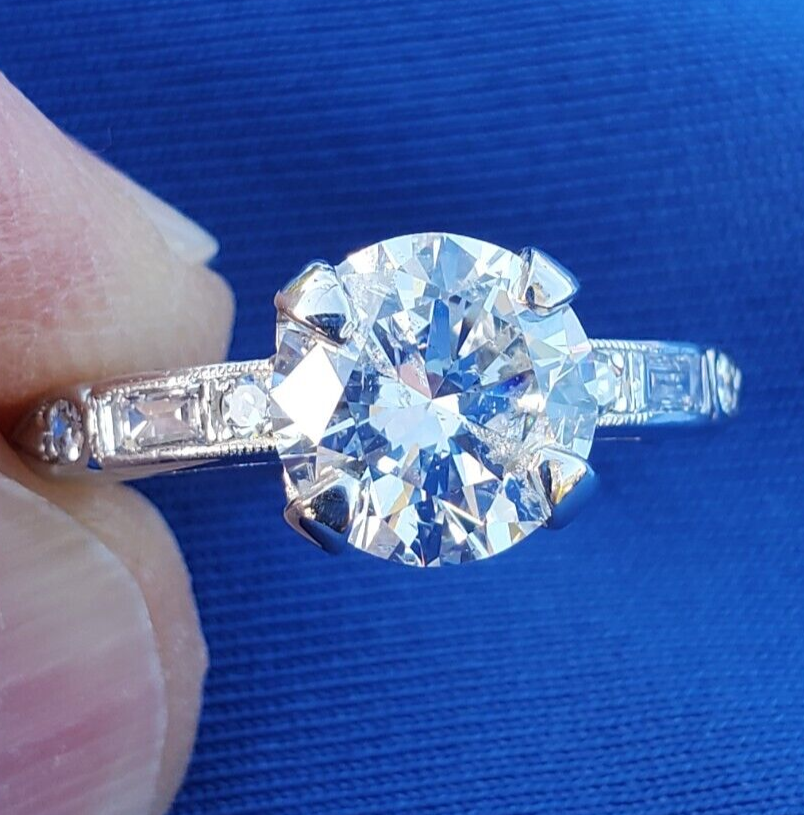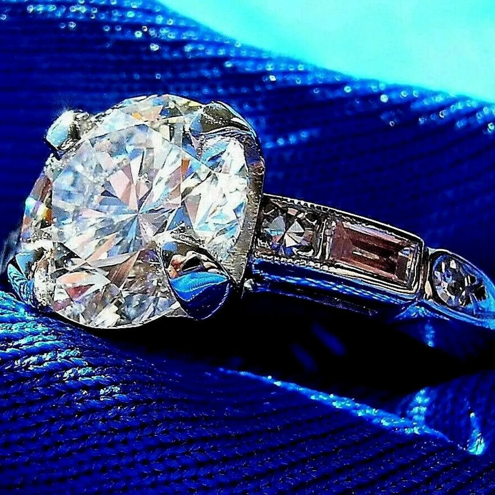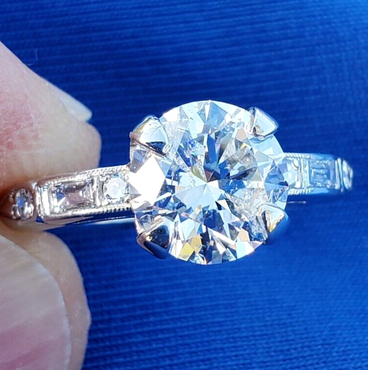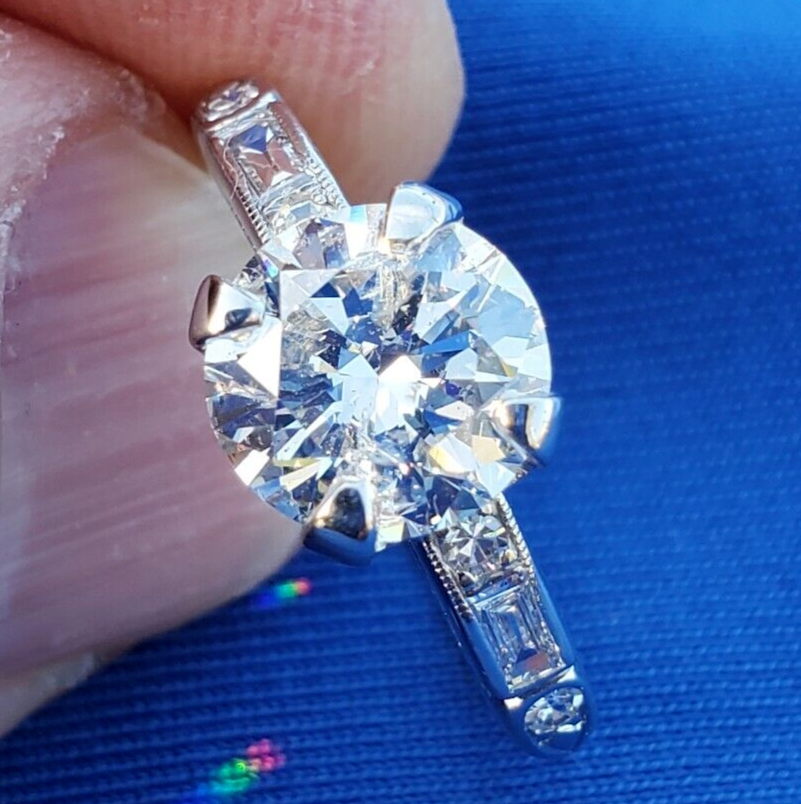 Earth mined Diamond European Deco Engagement Ring 2ct Antique Platinum Solitaire