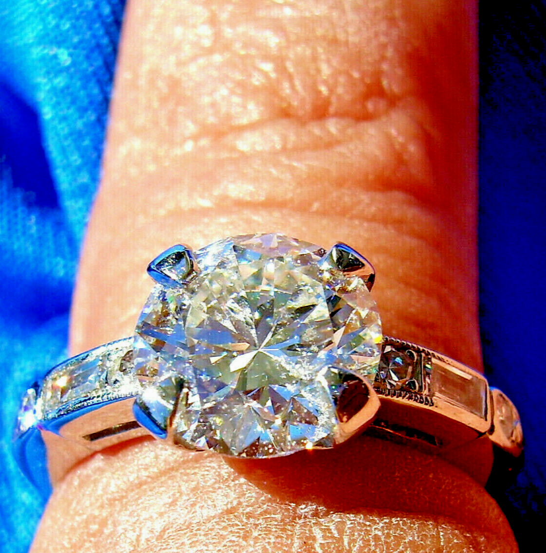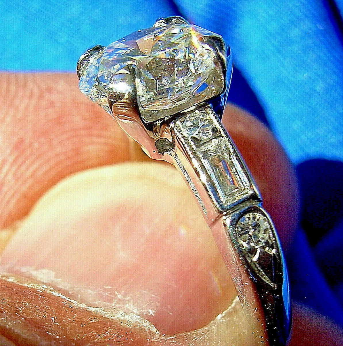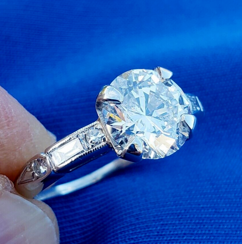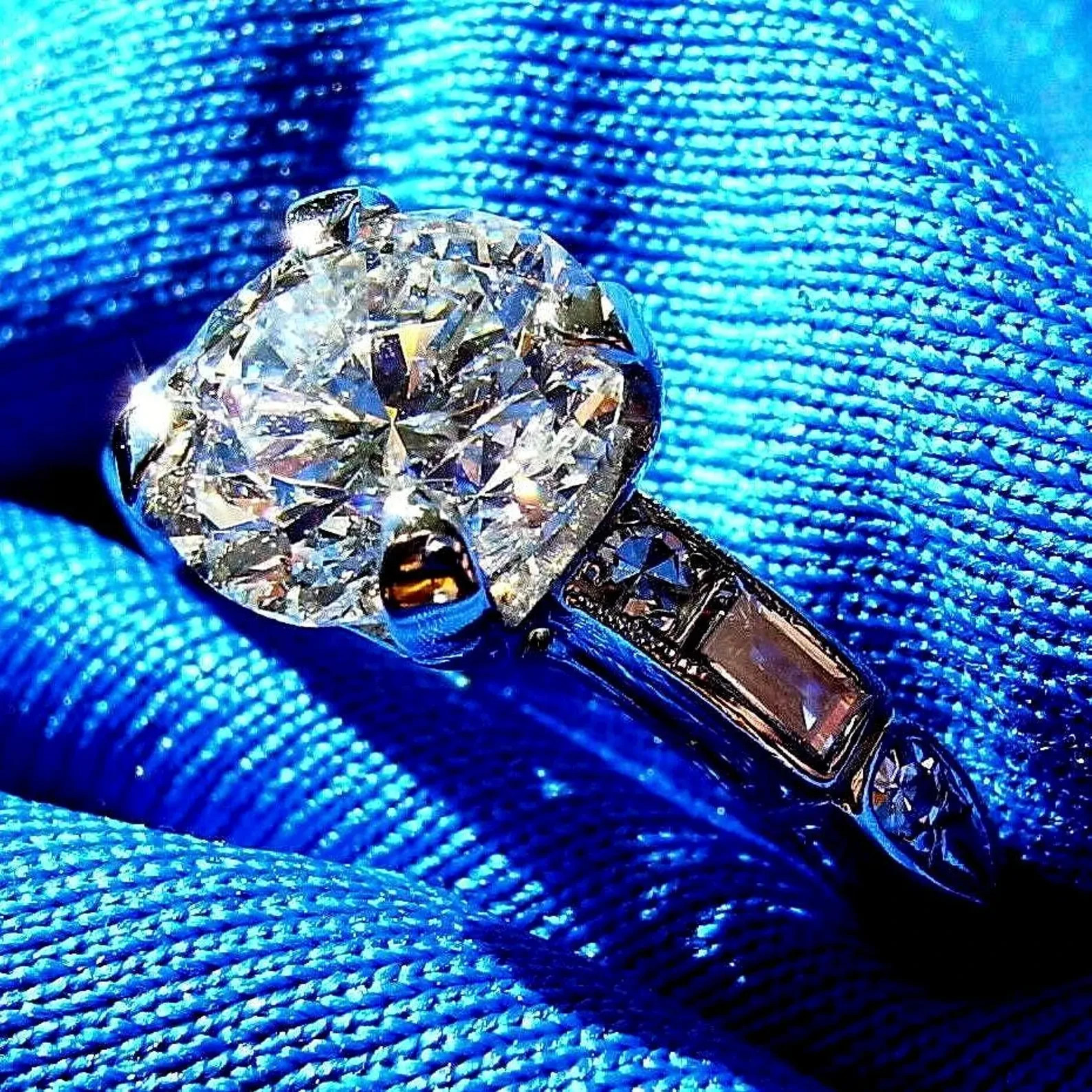 - Earth mined Diamond European Deco Engagement Ring 2ct Antique Platinum Solitaire