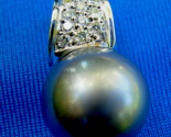 - Earth mined Diamond Pearl 12mm Black South Sea Pendant 14k Gold Deco Medallion
