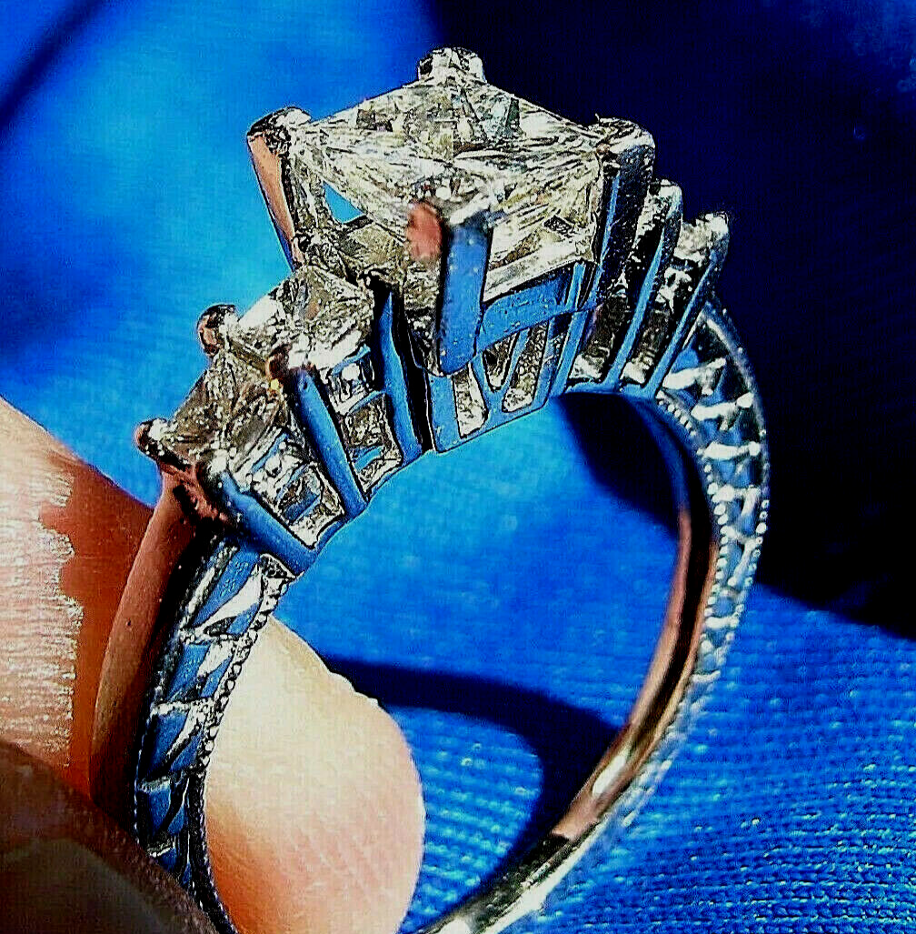 - Earth mined Diamond Princess Engagement Ring 1carat Platinum Hand made Solitaire