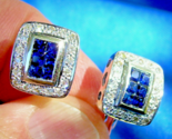 - Earth mined Diamond Sapphire Invisible set Deco Earrings Vintage Style 14k Gold