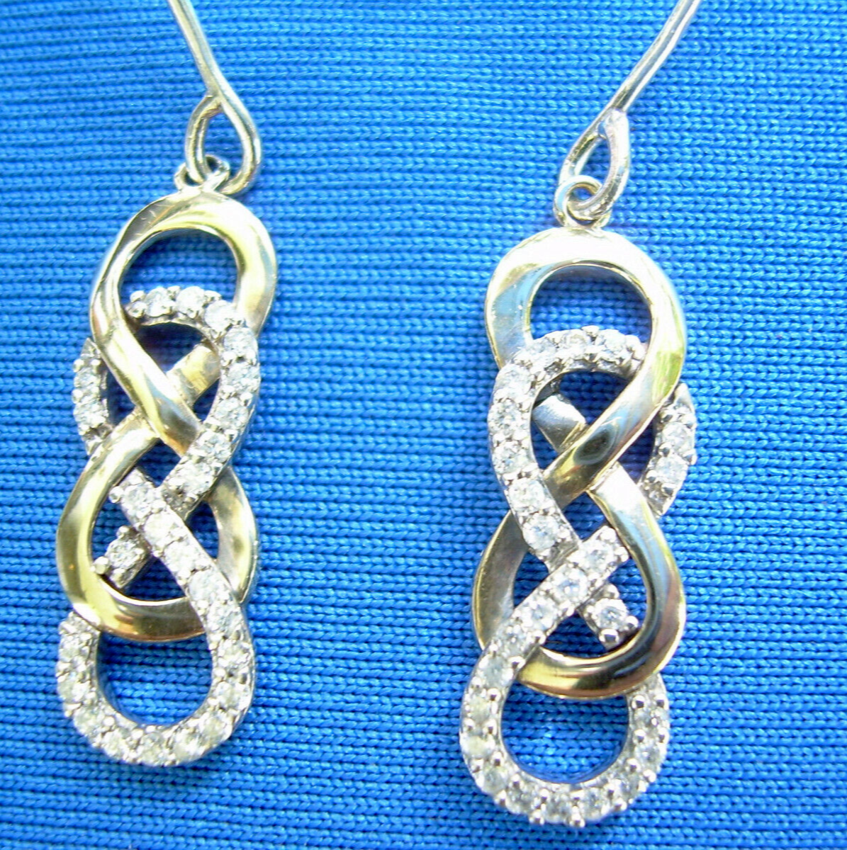 - Earth mined Diamond Vintage Infinity Gold Silver Earrings Matching Deco Pendant