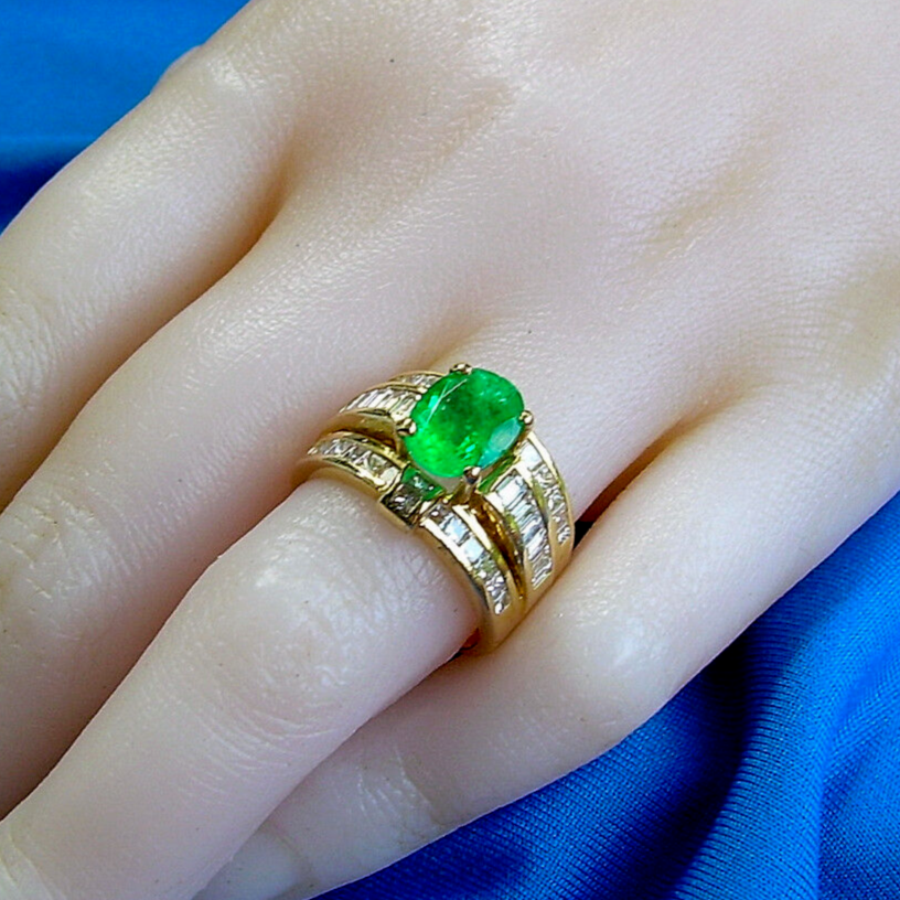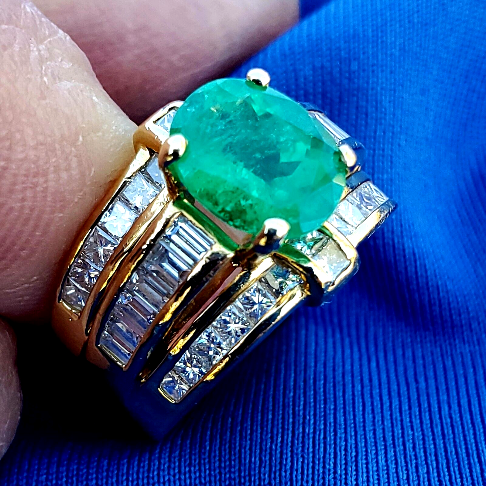 - Earth mined Emerald Diamond Deco Engagement Statement Ring 14k Gold Solitaire 4c