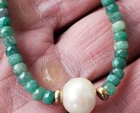 - Earth mined Green Emerald South Seas Pearl Necklace 14k Gold Clasp 18" inch