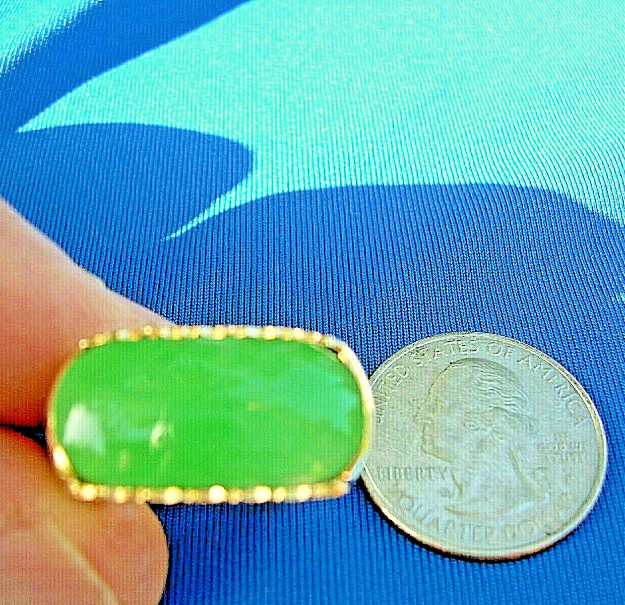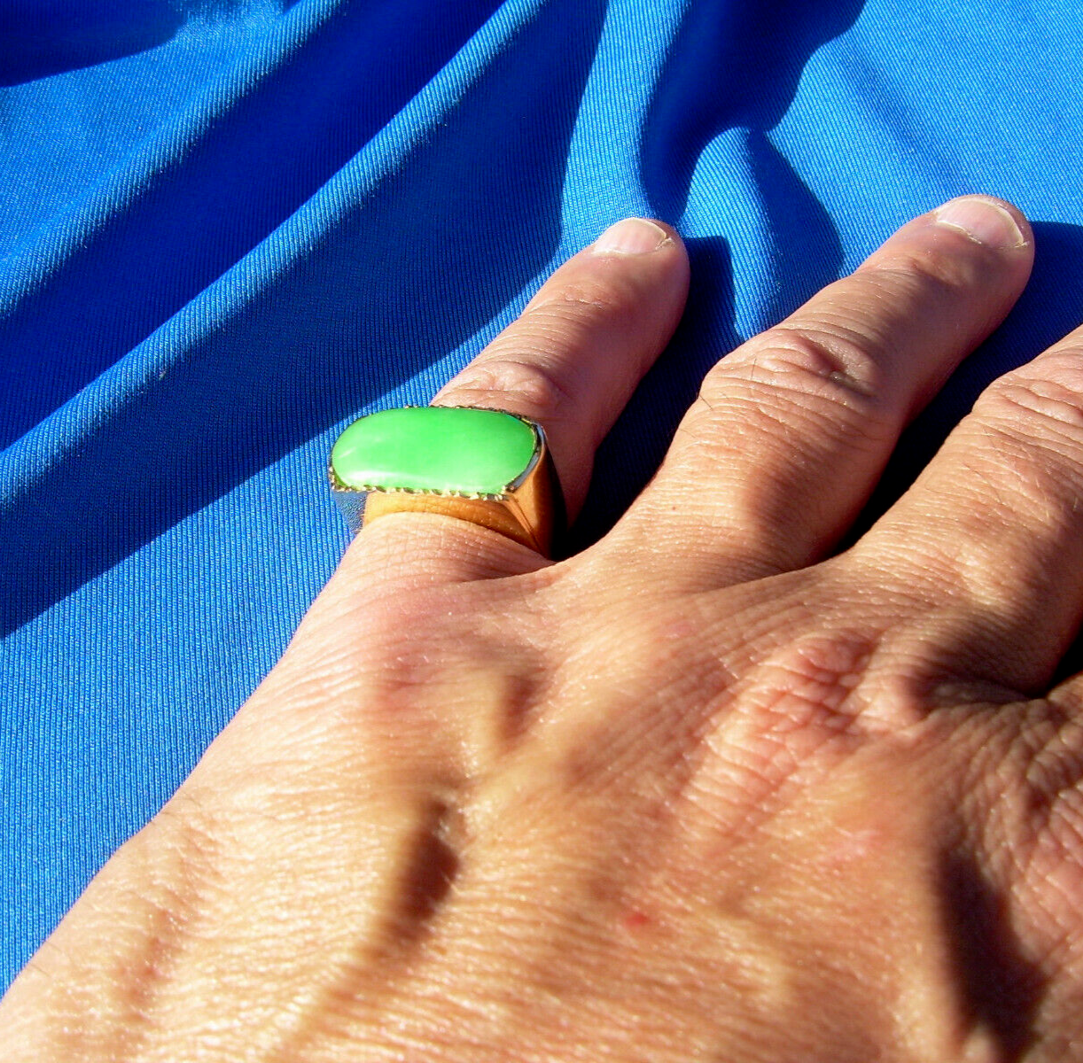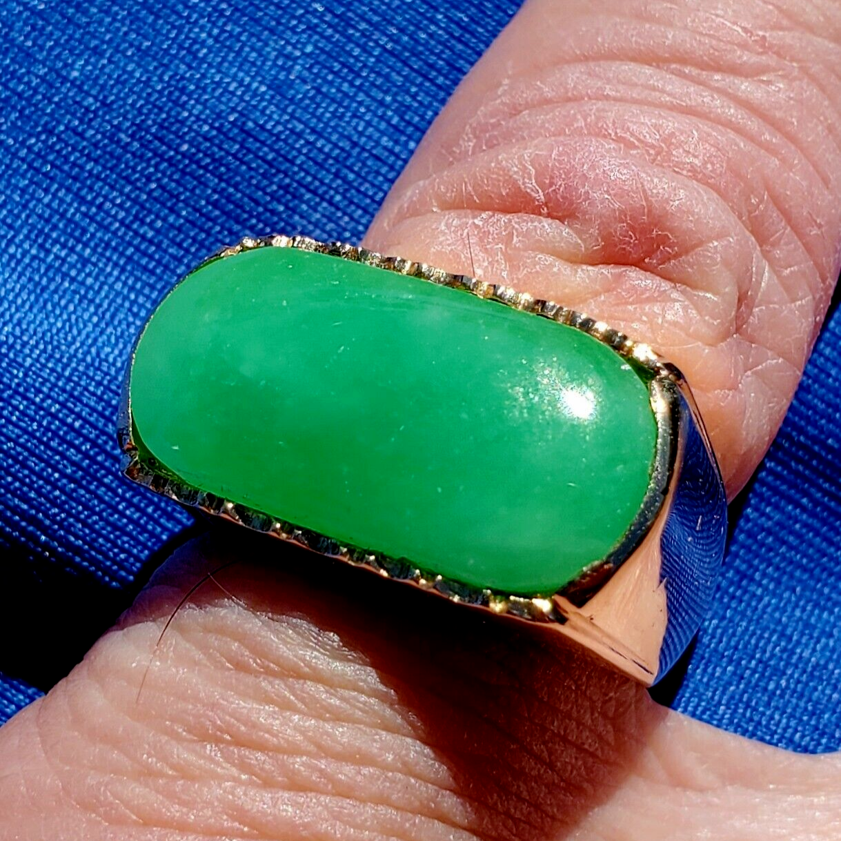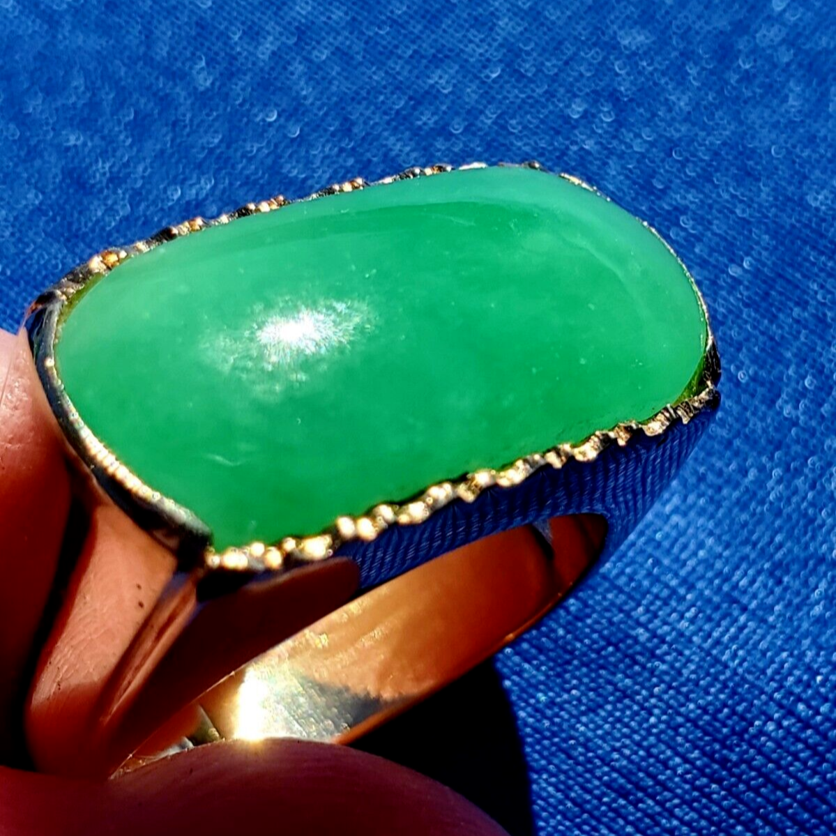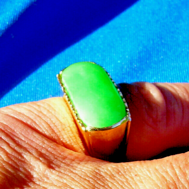 - Earth mined Green Jadeite Jade Deco Ring Antique Solid 18k Gold Size 8.75