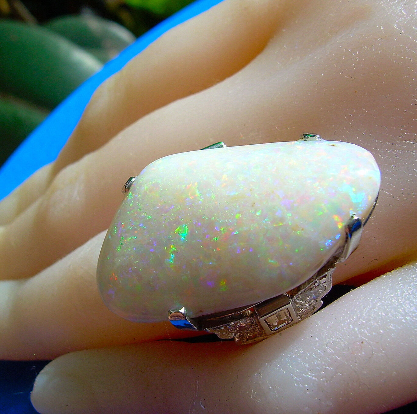OPAL DIAMOND PLATINUM ENGAGEMENT STATEMENT RING.