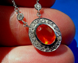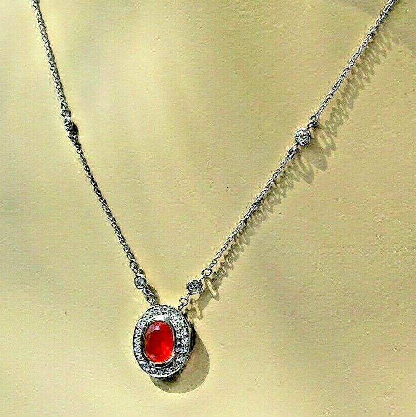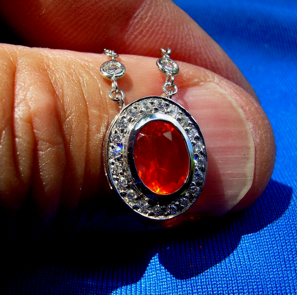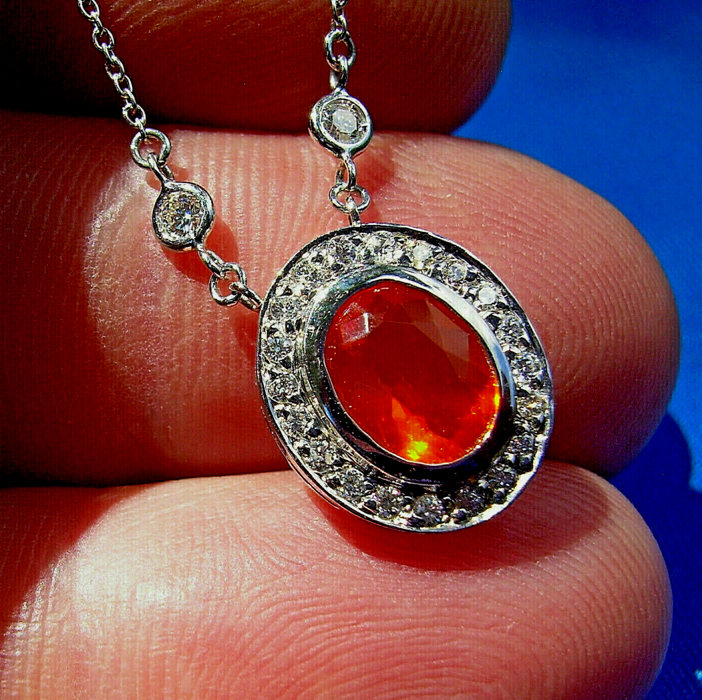 - Earth mined Precious Fire Opal Deco Pendant Diamond Station Necklaces 14k Gold