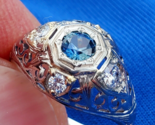 - Earth mined Sapphire Diamond Deco Engagement Ring Vintage Solitaire 14k Gold