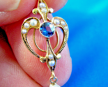Earth mined Sapphire Pearl Deco Pendant Antique Gatsby style Necklaces 14k Gold
