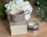 Vertical scratched lines. Comes with a scented candle tin "Gooseberry and Elderflower" so you are all set to light and go.