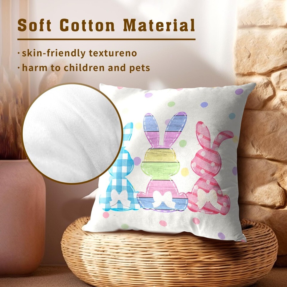 Comfortable MaterialOur Easter colorful rabbit pillow covers are made of high-quality COTTON fabric, ensuring comfort and durability. The soft and fine texture provides a cozy feel, making it perfect for snuggling