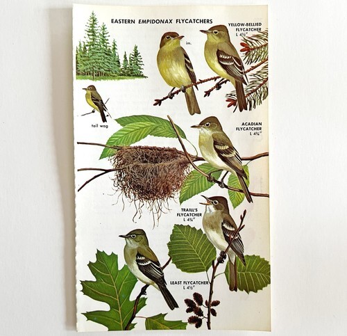 - Eastern Empidonax Flycatchers Varieties 1966 Color Bird Art Print Nature ADBN1p