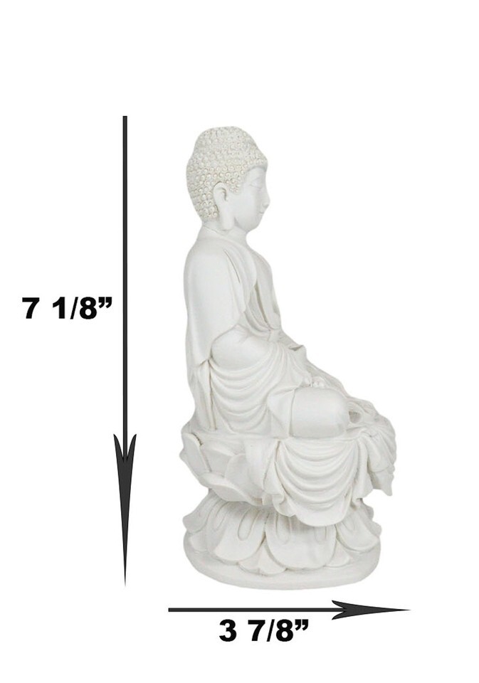 ? This Meditating Buddha Amitabha Statue is 7.25" tall, 4" wide and 3" deep approximately.