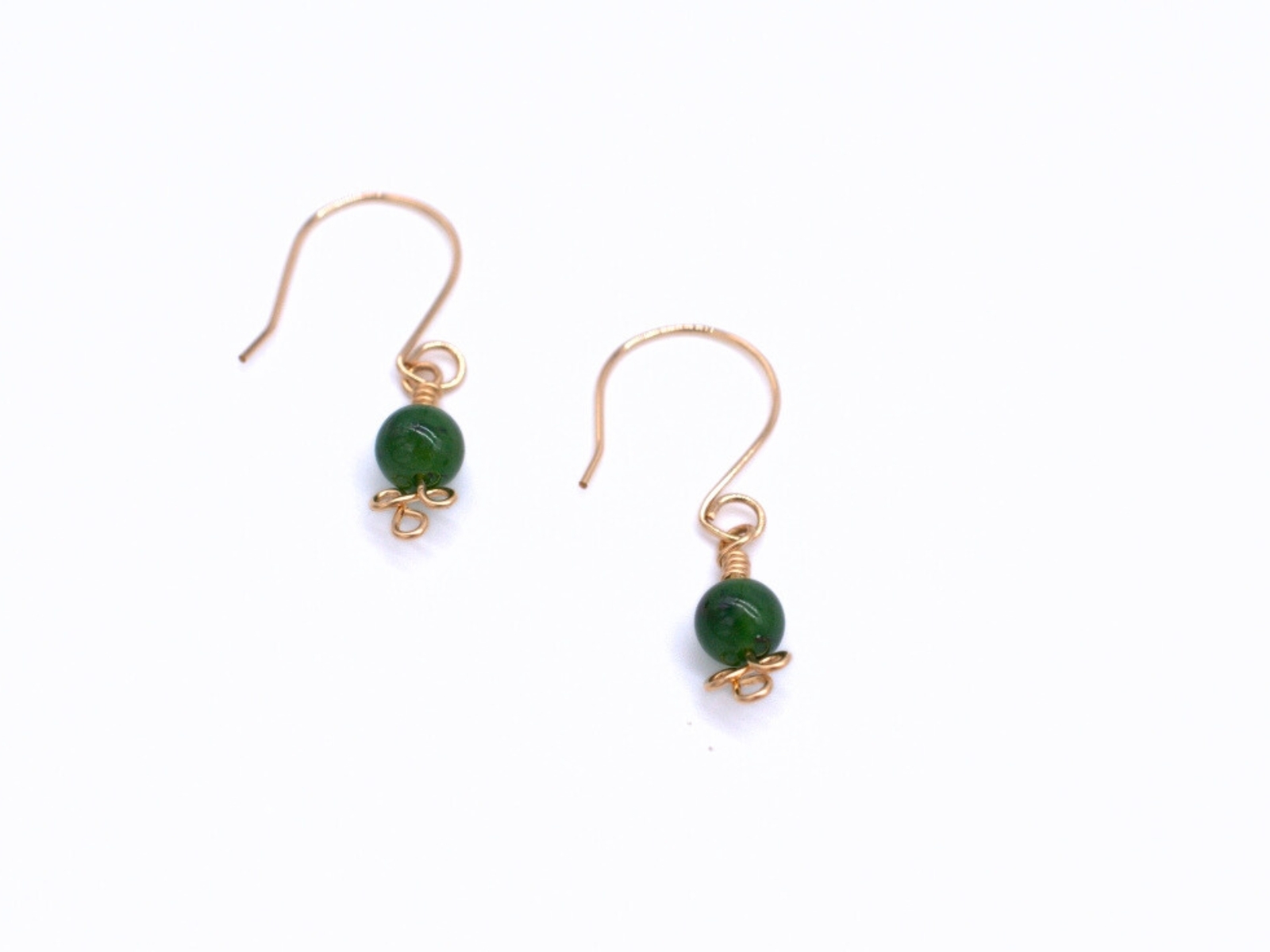 Each earring holds a 4mm Nephrite Jade stone. Round, highly lustrous, rich in the olive color, and natural.