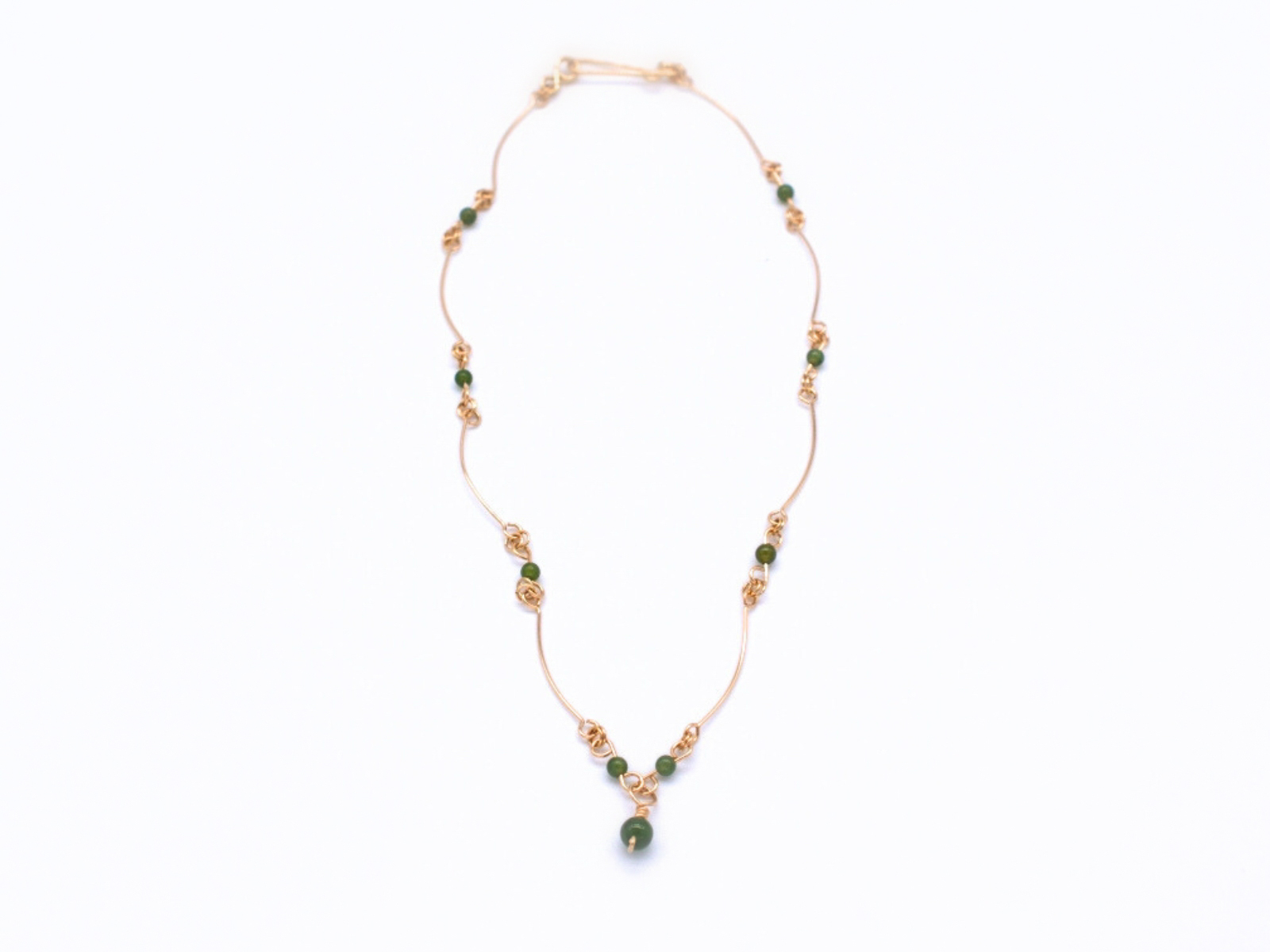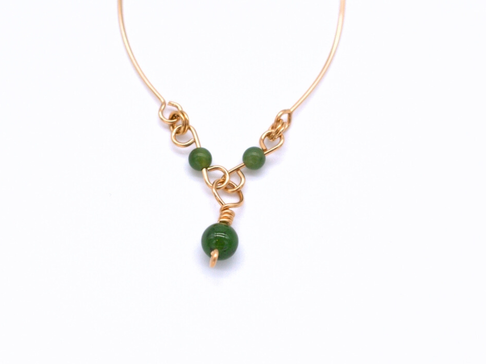 The jade is called Nephrite Jade. Two sizes of round jade stones: 4mm in the chain and 6mm in the pendant. These are highly lustrous and rich colored natural stones.