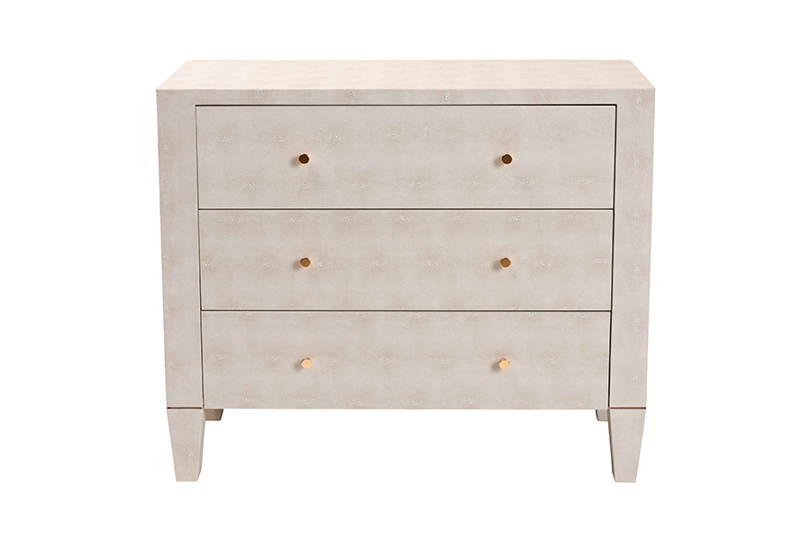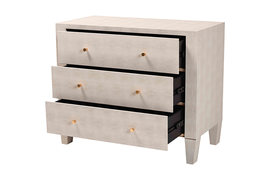 - Easton Modern Beige Faux Shagreen 3-Drawer Storage Cabinet