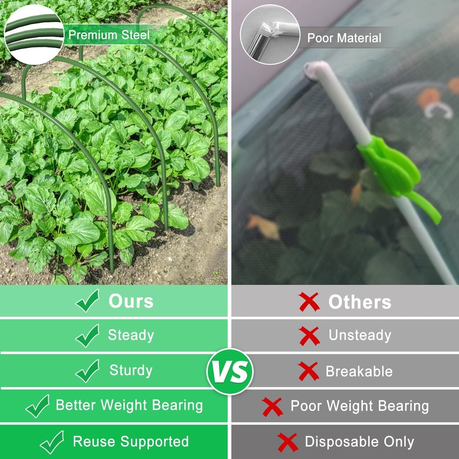 Don't settle for flimsy plant supports. Invest in a solution that promises durability, versatility, and ease of use. Order your Easy-Install 6Pcs Green Garden Hoops today and watch your plants thrive!