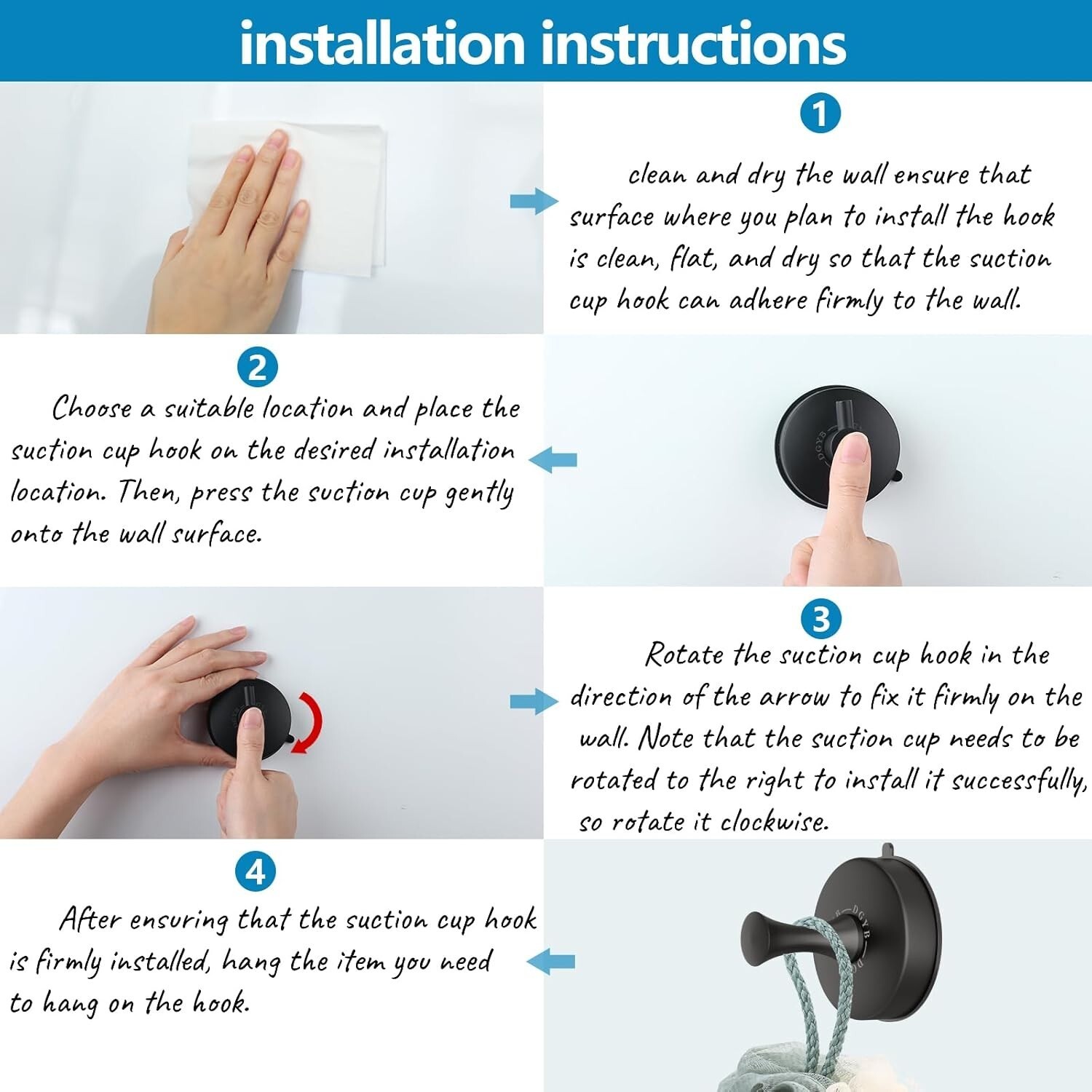 - Easy Install Suction Hooks Set – Modern 4-Piece Stainless Steel Bathroom Hooks