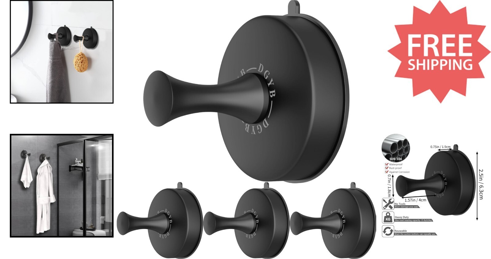 Upgrade your bathroom with our modern, minimalist black towel hook. Crafted from durable 304 stainless steel with a waterproof PVC suction cup base, it offers a sleek and fashionable solution for hanging towels, robes, or clothing. Easy to install without tools?simply press, twist, and secure on any smooth, non-porous surface like glass, tiles, or metal. This versatile hook is also suitable for use in the kitchen or laundry room, providing reliable support up to 11 lbs. Experience hassle-free removal and reuse without damage. Explore our selection for additional wall-mounted accessories at DGYB store. To ensure fast and reliable delivery, we work with multiple fulfillment partners and suppliers. Depending on availability and location, your order may ship from different warehouses or arrive in packaging that varies from item to item. Tracking details are typically provided shortly after shipment, and customer satisfaction remains our top priority. Please note that due to carrier policies and regional regulations, certain items may not be eligible for delivery to specific states or territories.