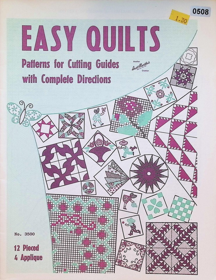 Discover a piece of classic Americana with this vintage 'Easy Quilts' pattern booklet from the beloved Aunt Martha's brand. A treasure for quilters and collectors of mid-century craft ephemera, this guide offers complete directions and cutting guides. The booklet includes patterns for 12 pieced and 4 applique blocks, reflecting the charming and practical home-crafting spirit of its era. This is a wonderful find for anyone passionate about traditional quilting techniques or vintage sewing collectibles.