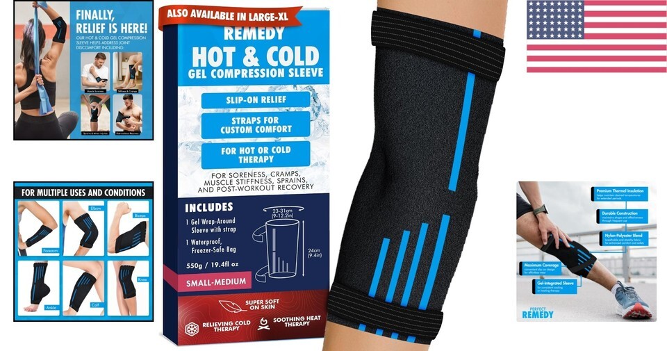 Easy Slip-On Freeze Sleeve ? Hot Cold Pain Relief for Elbows Knees, Size S-M