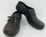 - Easy Spirit Daytrip Brown Leather Size 8 Slip On Mule Clog Buckles Wedge Heel