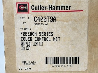 Eaton Cutler?Hammer C400T9A Freedom Series Red 120 V Pilot Light Cover Kit New - Open Box The Eaton Cutler?Hammer C400T9A is a cover control kit for Freedom Series starters designed with a red pilot light rated at 120 V. It serves as a panel?mounted indication and control accessory, ideal for industrial motor control enclosures. The unit features a compact 4? 2.7? footprint and includes hardware and wiring for straightforward installation. It supports both standard and NEMA rated enclosures, offering flexibility in application. Suited for use in harsh industrial environments, it provides reliable indication for system status or fault signaling. Listed by: Maksim (Sales Team) ?Don?t dream of winning, train for it!?~ Mo Farah (A positive moment brought to you by Help Resale) About Us Welcome to Help Resale, your go-to consignment shop where value meets quality. At Help Resale, we're dedicated to providing you with an exceptional shopping experience, whether you're looking to find the best deals or consign your items. Need to buy a product, but don't see it in our store? Please feel free to reach out to us and we will help you find it! Help Resale 7200 Fair Oaks Blvd Suite 120 Carmichael CA 95608 Business Hours: Monday-Friday: 9:00 am to 5:00 pm (PST) All product and company names are trademarks TM or registered trademarks of their respective holders. Use of them does not imply any affiliation with or endorsement by them.