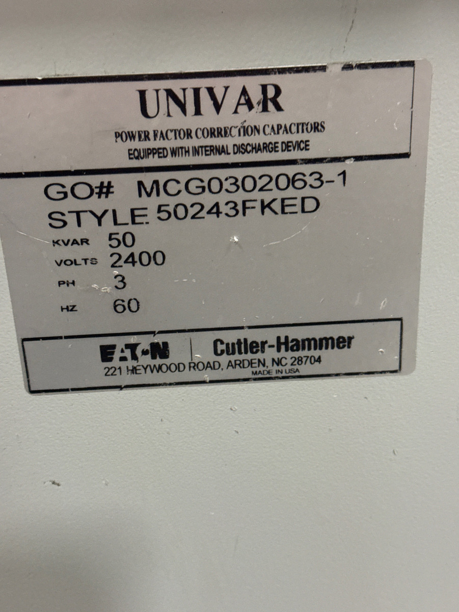 - Eaton/Cutler-Hammer MCG0302063-1 Univar Power Factor Correction Capacitor Bank