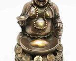 Ebros 4.25 Inch Lucky Buddha Bronze Finish Incense Burner Statue Figurine