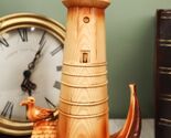 ? For many years, the lighthouse has been a symbol of inspiration and hope for many people. This nautical lighthouse in faux wood finish is the perfect decor for that vacation home or office of yours, whether by the sea or far inland. The spirit of the seas will come right along with this sculpture featuring a multi tiered floor structure with the light beacon at the top. The lighthouse rests on a boat deck with an oversized seagull perching on the roof on the house beneath.