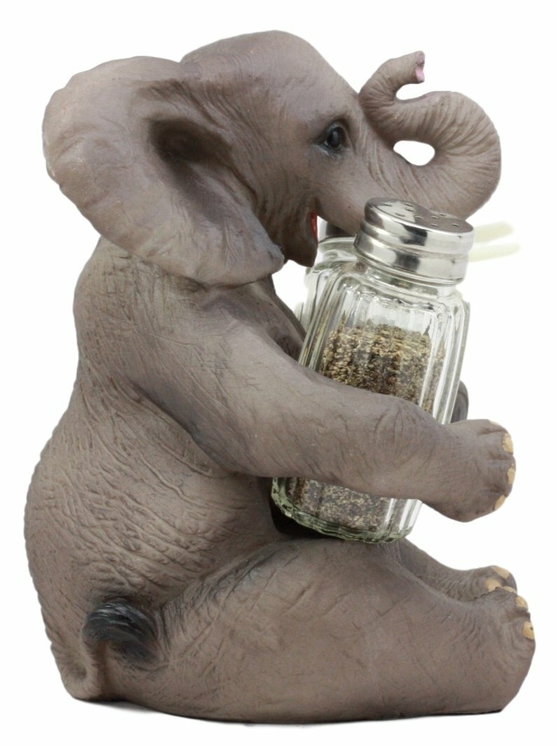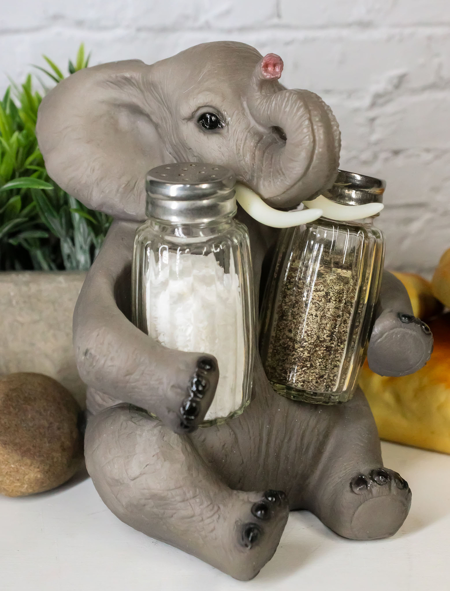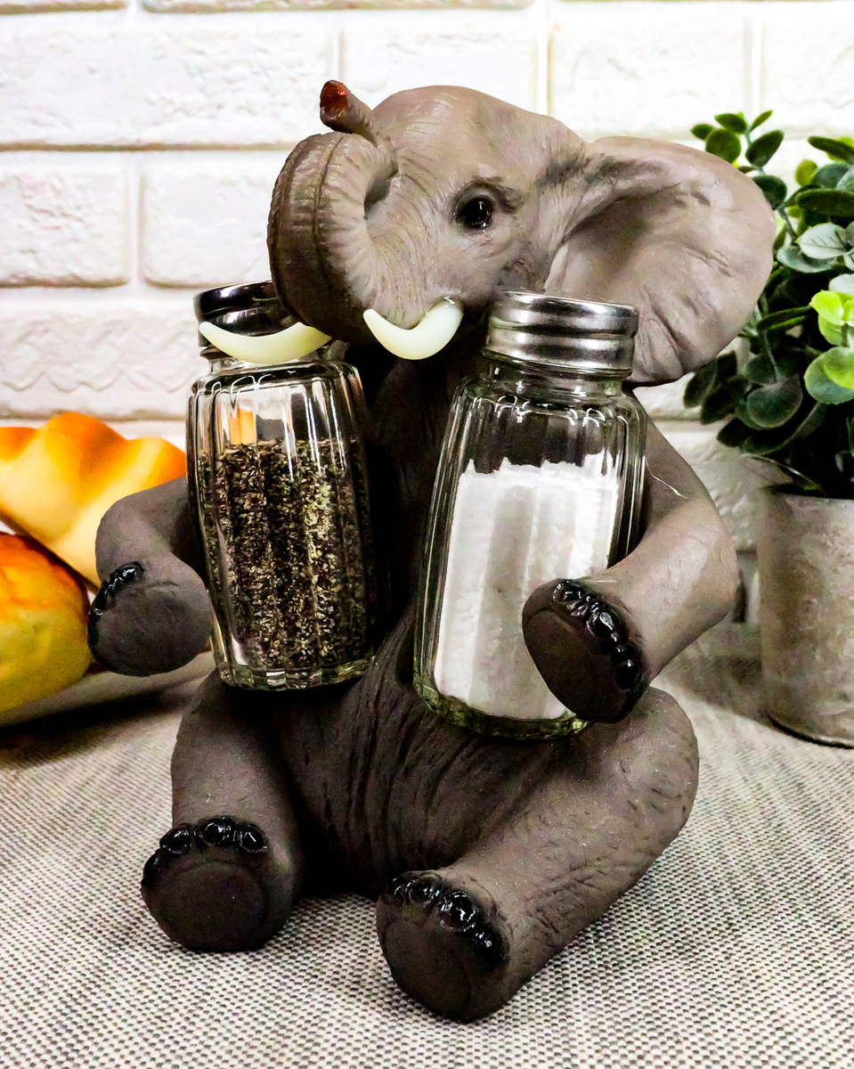 - Ebros African Bush Elephant Glass Salt & Pepper Shakers Holder Decor 7" H