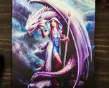 - Ebros Anne Stokes Fantasy Dragon Mage Sorceress Wood Framed Canvas Wall Decor