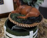 Ebros Brown Stallion Horse At Rest Round Jewelry Trinket Decorative Box 5.25"H