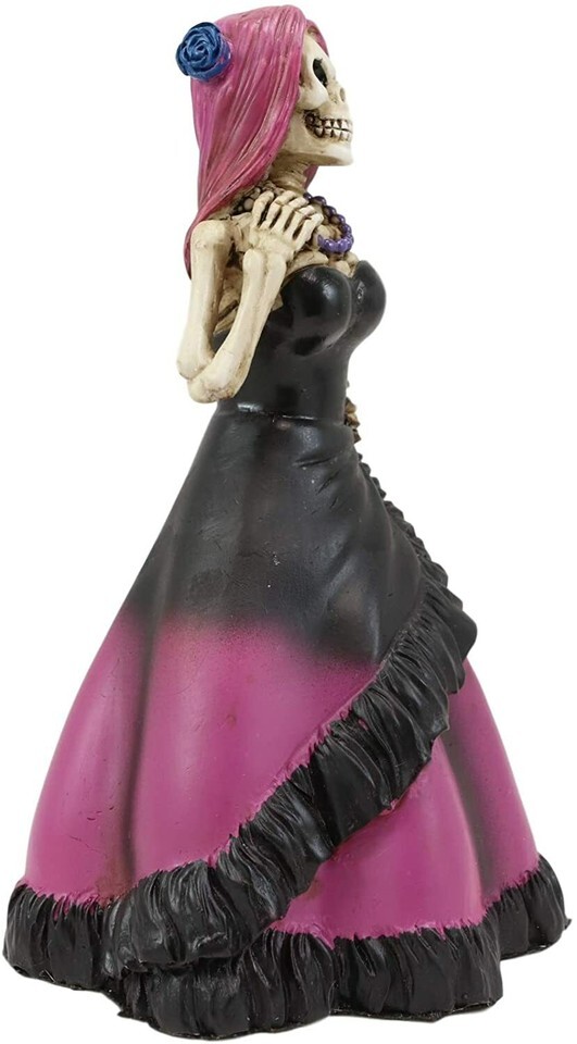 - Ebros Day of The Dead Magenta Skeleton Lady Bride Statue 6"H Decor DOD Figurine