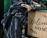 ? This Gothic Grim Reaper Skeleton With Dual Pistols figurine is 9" tall, 8.25" long and 5.25" deep approximately. It weighs about 1.75 pounds.