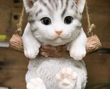 Ebros Gray Striped Tabby Kitten Macrame Branch Hanger 5.5"H with Jute Strings