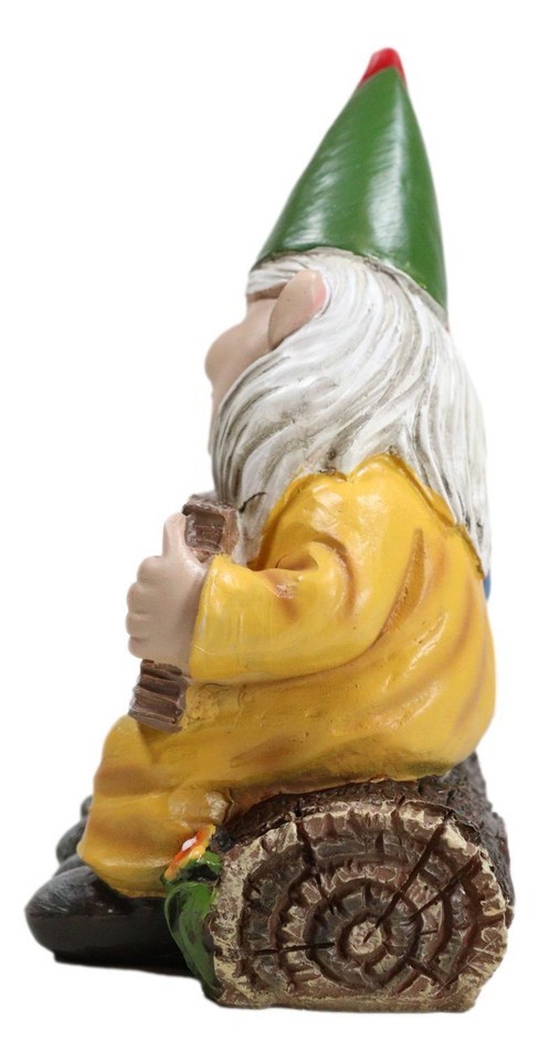 ? Home is where the gnome is. Let our sweet, snuggling gnome couple add a heartfelt touch to a garden, or even a mantel. Molded from designer resin, our happy hobbits statue is carved in fine detail from the log that they are sitting on up to their facial features, and painted in full pastel colors. It's a gift full of woodland charm and fairytale magic. The gnome couple holds an inspirational sign that says "Grow Old With Me, the best is yet to be".